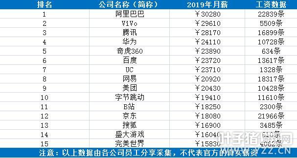 2019年互联网公司员工月薪曝光 这15家公司里 有你的吗?