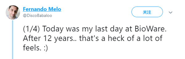 近两年Bioware工作室的状况并不算十分顺利,从《质量效应:仙女座》到《圣歌》,游戏作品在玩家群体中的口碑每况愈下。很多人都希望Bioware能凭借《龙腾世纪4》打一个漂亮的翻身仗,然而不幸的是,游戏的首席制作人Fernando Melo宣布正式从Bioware离职。 Fernando Melo宣布正式从Bioware离职 Fernando Melo通过个人社交媒体向Bioware和一直以来支持他的玩家们表达了感谢,并为能够参与制作《龙腾世纪》新作而感到荣幸。另外,同样根据他自己的说法,他是自愿离职,并没有受到强迫,所以玩家们不必为他太过担忧。 Fernando Melo 一般情况下,首席制作人的离职很可能会对他所负责的游戏产生影响,不过Fernando Melo却表示,《龙腾世纪》新作将会提供给玩家们最棒的龙腾世纪体验,并且他这次也将以玩家的身份来体验这款游戏。 |