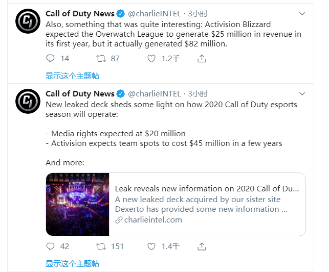 【叶子猪网8月19日讯】 据外媒Dexerto报道,动视暴雪正在积极的策划推出一个《使命召唤》全球级别的游戏联赛,该联赛会套用和守望先锋联赛一样的以城市为单位的模式,就像世界各地的足球、篮球等传统体育竞技项目那样。 有消息称,每个战队需要由一名经理和7到10名队员组成,队员最低工资为每月5万美元(约合RMB 35万)。动视暴雪计划使命召唤联赛未来能有28支城市战队,并预测在近十年内,使命召唤联赛的职业战队门槛费用会达到4500万美元(约合RMB 3亿1千5百万)。 动视暴雪预计在2020年使命召唤联赛营收2000万美元(约合RMB 1亿4千万)。这个预测其实已经非常保守,之前守望先锋联赛刚刚创建时,动视暴雪预测第一年有2500万美元的收入 ,而实际收入达到了惊人的8200万美元。 |