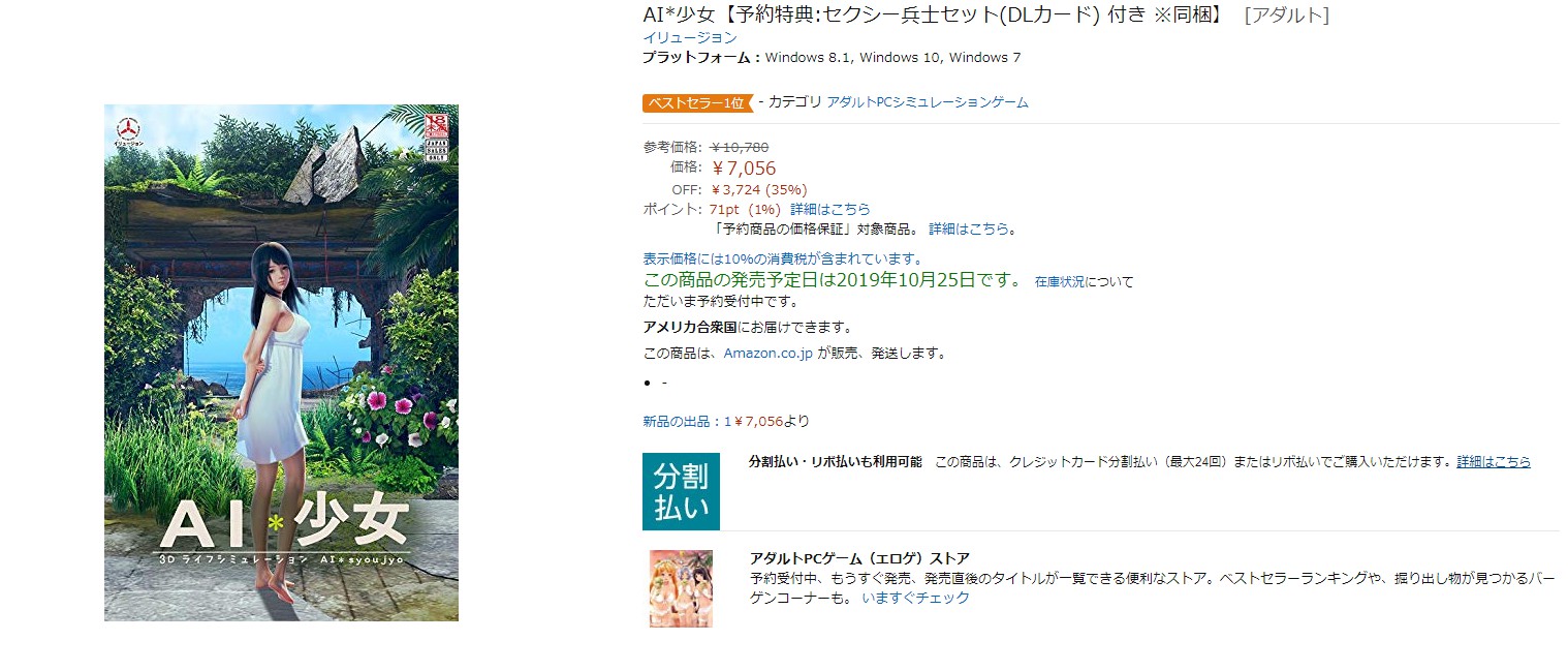 I社新作《AI》少女上架日亚 售价467元送性感士兵套装