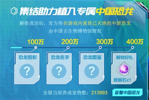 《我的起源》是一款由完美世界研发、腾讯游戏代理,以生存创造、复苏世界文明为主题,支持万人同服在线的革新级沙盒进化MMO手游,现如今,《我的起源》全民孵化计划盛大开启,玩家们可孵化养成宠物并在游戏不删档上线后任选一只带入游戏,全新的游戏玩法可谓是赚足了眼球,那就让我们共同来了解一下吧! 立即参与活动:https://wdqy.qq.com/cp/a20190726petm/index_wqm.shtml 解锁专属中国恐龙 赢取宠物养成礼包 玩家只要参与“全民孵化计划”这一活动即可提前揭秘游戏内专属中国恐龙,在解锁游戏内专属中国恐龙后,官方将在中国古生物博物馆的授权下复原游戏内已灭绝的中国恐龙。全服养成宠物达到一百万时将解锁恐龙剪影,两百万则会解锁恐龙名字,三百万将公布恐龙图鉴,四百万的解锁好礼将是宝贵的数据石。另外,养成宠物还可以获得宠物养成礼包,其中包括彩虹苹果、驯兽指南等。 邀请好友来祈福 增加高级宠物几率 在活动期间,玩家们可以邀请自己的游戏好友来解锁助力,只需邀请三位好友祈福便可增加高级宠物蛋的孵化几率,完成每日任务还可获取培养次数,每日首次登陆页面可获得一次培养次数,每日首次分享页面可获得一次培养次数,邀请好友参与活动可获得两次培养次数,想要在游戏不删档上线后拥有心仪宠物的玩家们可要叫上自己的小伙伴们一块来游戏中玩耍! 养成宠物乐趣多 活动福利享不停 玩家们可以在“我的背包”中浏览自己已养成的宠物,最终选出自己心仪的一只宠物带入游戏,解锁的宠物越多,选择的的种类也将会越多,在拥有选择余地的同时,玩家们将体会到充满乐趣的游戏玩法,全民孵化计划的开启也将预示着《我的起源》迎来独特的宠物玩法,让我们继续期待吧! 《我的起源》全民孵化计划即将开启!快点叫上你的小伙伴们一起来游戏中体验全新的宠物玩法吧!还有更多专属福利等着你哦! |