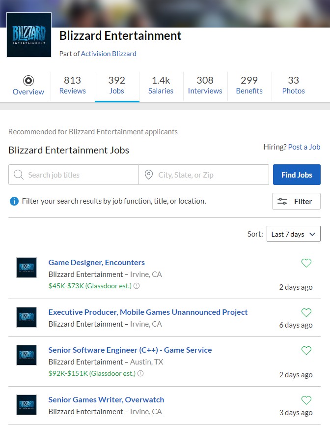 暴雪发布多个招聘职位 含未公布手游执行制作人