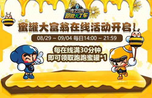 国民级竞速网游《跑跑卡丁车》全新死斗模式现已劲爆开启,所有车手都沉浸在激烈碰撞中体验生死时速。而在今日,蜜罐大富翁活动也将正式开启。车手们可使用在“跑跑蜜罐”中获得的“蜜罐宝石”进行抽奖,奖池中的“黑骑士 X(无限制)”、“宝宝(无限制)”、“海德拉 X(无限制)”等多款豪华道具等你来赢哦! 除此之外,繁荣山丘还将开启多种活动派送可组合“稀有部件 X(无限制)”等多款道具的“稀有X宝石”。海量好礼,千万不要错过! 蜜罐抽奖赢壕车>>> https://evt05.tiancity.com/kart/51209/home/index.php 丰富任务送好礼>>> https://popkart.tiancity.com/homepage/event/2019/kr190829act 【蜜罐大富翁转盘开启 海量无限制道具放送】 8月29日12:00-9月9日23:59期间,车手们完成死斗模式任务、勤劳的蜜蜂任务以及累计在线都可获得“跑跑蜜罐”。打开“跑跑蜜罐”不仅有机会获得“地狱犬 X(无限制)”等多款豪华道具,还可获得蜜罐大富翁活动的抽奖道具——“蜜罐宝石”。 在蜜罐大富翁转盘活动中,车手们不仅可以获得“尼欧的荧光绿新款齿轮”、“粒子激活器Black”等豪华好礼,而且在每走完一圈转盘后还可领取专属奖券,打开奖券即有机会获得“黑骑士 X(无限制)”、“宝宝(无限制)”、“海德拉 X(无限制)”等超级道具! 【稀有X宝石组合惊喜 show time惊喜呈现】 除了“跑跑蜜罐”之外,完成死斗模式任务和勤劳的蜜蜂任务,车手们还将获得另一种珍贵宝物——“稀有X宝石”。该道具可用于组合“尼欧的漆黑齿轮”、全新赛车“稀有部件 X(无限制)”等道具。分解“稀有部件 X”后,车手可获得X引擎稀有部件! 那么如何获得“稀有X宝石”呢?8月29日-9月1日每天21:00,只要车手们保持在线状态,即可免费领取show time奖励的“稀有X宝石”。同时,完成一系列死斗模式任务后,车手们同样可获得“稀有X宝石”。更多好礼,等你来开启哦! 蜜罐大富翁甜蜜开启!稀有X宝石组合惊喜!快来《跑跑卡丁车》成为蜜蜂王国的大富翁吧! |