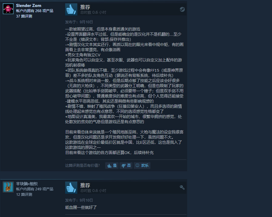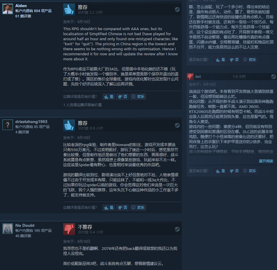 《机械巫师》开发商Spiders打造的新RPG游戏《贪婪之秋》现已发售,目前国外媒体公布的评分并不多,IGN暂时给了8分评价。当然对于一个小型开发商来说,这个评分已经足够了。 IGN表示《贪婪之秋》的游戏节奏很好,动画表现很吸引人,展示了对细节的用心打磨。游戏既有各种你可以杀死的怪物,让你感觉自己很强大,也有一些真正有挑战的Boss,测试你的镇定和反应。此外游戏还有很多自己尚未接触到的一整套魔法系统(IGN评测作者使用的是战士/盗贼混合build)。玩家对自己的两个AI跟班并没有太多的控制权,所以缺乏像《龙腾世纪》那样的战术元素。 “在所有要做的事情中,我可能只完成了这个巨大RPG游戏的一半,但自己踏出的每一步我都很享受。虽然《机械巫师》令人失望,但我仍然想看到其他游戏能够尝试它所试图尝试的巨大野心,而《贪婪之秋》则成功兑现了这一承诺。当然《贪婪之秋》目前仍然有一些bug,角色模型很糟,素材的重复利用破坏了沉浸感,整体缺乏打磨,让它对《巫师3》的王位无法产生威胁。在我对它做出最终评价之前,我需要弄清楚故事如何结局。但我已经可以说,《贪婪之秋》即将是一个广受大众喜欢的游戏,特别是对那些至今喜欢RPG游戏,讨论这个类型十年前如何达到顶峰的玩家。我们可能不久就得食言了。” 《贪婪之秋》Steam国区158元,支持简体中文,当前整体评价为“褒贬不一”,好评率为68%。国内玩家普遍反映的问题是本作的汉化不过关,优化太差,而战斗动作比较僵硬等。 《贪婪之秋》开头17分钟演示: 其他媒体评分: Hobby Consolas:8.4 GamePro Germany:8 Multiplayer.it:8 PlayStation Universe:8 Push Square:7 Screen Rant:7 DualShockers:6.5 Steam国区评价: |