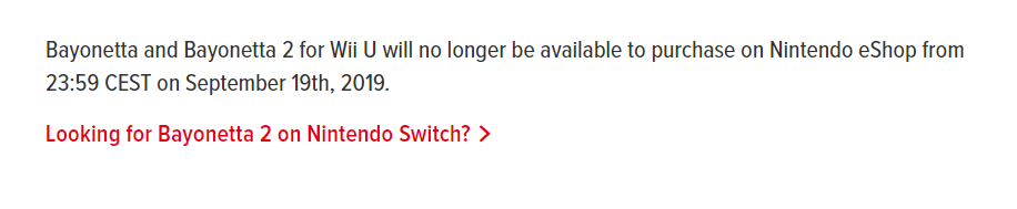 今天(9月10日)任天堂Wii U欧服与日服的《猎天使魔女》商店页面发布了一则公告,显示《猎天使魔女》系列的前两部作品将于2019年9月19日 5:59(欧服,北京时间)和9月20日 5:59(日服,北京时间)从商店下架,本作的Switch版没有受到影响。 任天堂Will U欧服《猎天使魔女》商店页面公告 《猎天使魔女》是白金工作室制作的动作游戏,前两部作品均由任天堂发行到了Wii U平台上,受到了非常多玩家的欢迎。2018年2月17日,《猎天使魔女1+2》登陆到了任天堂全新的Switch平台,如今《猎天使魔女》宣布将从Wii U平台部分区服开始下架,也许以后想要游玩任天堂版贝姐的玩家只能从Switch上购买本作了。 据悉,目前《猎天使魔女》其他区的Will U商店页面还没有发布此公告,想要购买Wii U版《猎天使魔女》的玩家可以在下周之前前往购买,也可以在其他区服进行购买。 |