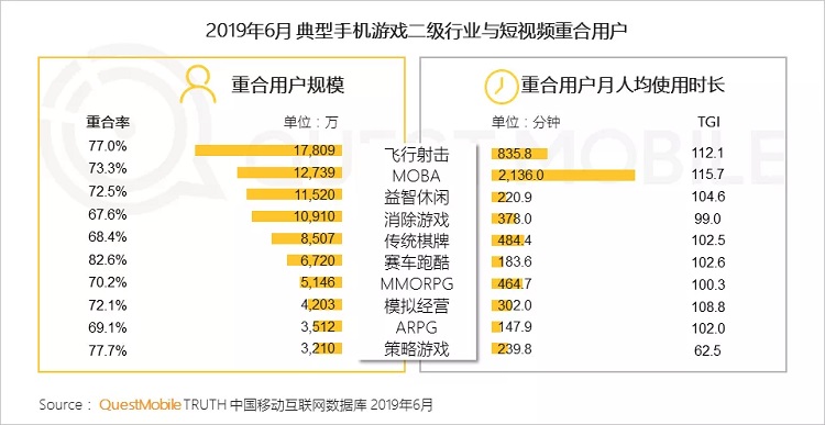 近日,QuestMobile发布了《2019手机游戏行业半年报告》,小编研读之后发现很有意思,这里看到的一些有参考价值的数据,拿来给大家分析一下。 游戏行业在2018年3月,国内游戏版号暂停发放,经历了寒冬时期,很多游戏公司都进行裁员,业务疲软营收下滑。12月份游戏版号恢复审批,2019年Q1、Q2季度,一批接一批的游戏版号获批下发,行业回暖,用业内的话来说,是“甜蜜反弹”。 目前游戏大厂网游产品推新的消息几乎没有听到,但手游行业却是百花齐放,今天我们探讨的也是基于手游行业。(数据图表报告来自QuestMobile) 2019上半年手游销售额770.7亿 小幅增速 在报告图表中可以看到,2019年手游市场销售规模回升,高达770.7亿元,同比增速21.5%。对比2018年6月份,销售规模634.1亿元,同比增速12.9%。 可以看到2019年上半年市场有小幅度的上涨,但增速也远不如2015年、2016年、2017年的数据。寒冬疲软期过后,新产品的发行上线带来了一定的营收,但还未真正发力,预计Q3、Q4才会有比较可观的上升幅度。 手游用户使用时长下滑 短视频赶超手游 这也是比较现实的一个问题了,只不过数据更为直观而已。2016年以来,以抖音、快手为首的短视频社区APP高速发展,据数据统计,2016年用户规模1.53亿,2019年用户规模已达4.92亿人,短视频市场规模2018年突破百亿,到2019年已经高达210亿元。 在手游行业月人均使用时长上,2019年6月对比去年同期,下降了5.6%。在手机用户使用移动互联网时长中,短视频用户占比12.2%,手游占比8.5%。 而且可以看到,在2018年6月份的节点上,短视频赶超手游之后,便一直呈现上升趋势,以一定的差距保持上升,相反手游确实2019年3月份后又开始高点回落,起起伏伏。 从这个趋势上可以知道,抖音为主导的短视频行业,已经以微弱的优势领先了手游日活,此外并没有更多信息。因为这个图表其实不尽完善,如果把抖音与剩下占比80%的视频类APP、资讯类APP、社交类APP等使用时长加以对比,那肯定又是大相径庭的曲线。 小程序分流 短视频成新的手游推广渠道 不同于传统推广渠道,游戏投放硬广告效果参差人意,相反小程序以其超强的变现能力,正在抢占推广渠道的用户和流量。 小程序小游戏包体小,下载卸载都极为方便,在图表中可以看到《欢乐斗地主》去重用户总量游戏APP与小游戏分别是5188万和3637万。 偏休闲类、棋牌类的手游在小游戏中有一定的优势,比如《欢乐斗地主》、《贪吃蛇大作战》、《天天象棋》,但重度动作类的手游,比如《王者荣耀》、《和平精英》,却不一定适用。 我们在刷抖音的时候,总是会看到一些手游下载的抖音视频推广,目前抖音也已经成为游戏厂商逐步试水的推广渠道。除了可以推理得出的,推广游戏路径变短,更有利于游戏推广完成。另外一个重要的原因就是,短视频用户与手游用户的重叠性高! 从图表中看到,飞行射击类、MOBA类手游与短视频重合率极高,这也就是说,短视频用户中绝大部分都是中重度游戏玩家。在推广渠道上讲究的目标用户人群投放,可以说重合用户基本就是目标群体了。 这就是今天与大家分享的《2019手机游戏行业半年报告》,一些相关数据的解读,希望能给到你参考,对于本期数据,你有什么不同的看法呢? |