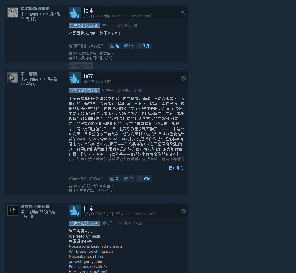 海战大逃杀游戏《大漩涡(Maelstrom)》去年4月11日发售,登陆了Steam抢先体验,当时售价20美元。而今天开发商Gunpowder Games宣布本作将转为免费游戏,任何玩家都可以进入游戏体验。 Gunpowder Games表示:“《大漩涡》游戏中所有的玩法和升级都可以通过免费游玩解锁。即便是想要彻底享受这款游戏,玩家也不需要额外的购买。游戏不会存在充钱就能变强。” 不过玩家却可以花钱让自己加速升级,当然游戏中也会提供各种各样的皮肤和battle pass。官方表示《大漩涡》游戏内的商城没有开箱,所有的物品都可以直接购买获得。 此前花钱购买了本体游戏的玩家将获得大批补偿,包括解锁所有的战船,每场比赛有三个伙伴/1个传奇伙伴,季节性battle pass,1万游戏货币以及其他独家内容。 老用户补偿 此外开发商还确认不死战舰以及双排模式正在开发中。 未来开发计划 玩家评价: 游戏截图: |