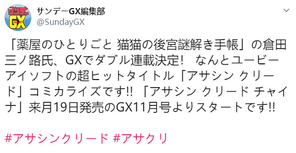 国内玩家期待已久的《刺客信条:中国》要来了。可惜的是,这是一个根据游戏改编的日本漫画,而不是育碧官方推出的游戏。 Twitter用户Sunday GX近日确认他们计划在今年秋季发行一个《刺客信条》漫画,根据育碧游戏改编,由Minoji Kurata监督。该系列漫画叫做《刺客信条:中国》,主角就是《刺客信条编年史:中国》游戏中的女主Shao Jun。 漫画将描述Shao Jun作为“中国最后一个刺客”的生活。该系列设定在中国历史上的明朝,将会看到统治的皇帝决定实行政治大清洗,将颠覆中国社会的结构。在这场大清洗中,Jun的所有同志都被杀死,她被迫逃亡到欧洲避难,但几年后她又回到了中国进行复仇。 《刺客信条:中国》将于10月19日在GX11月号开启连载。 |