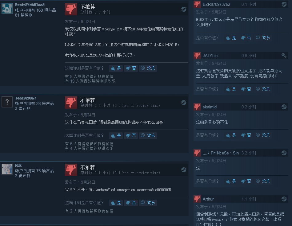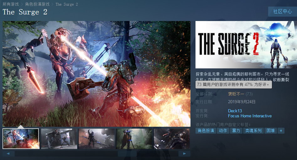 今日(9月24日)《迸发2》在Steam平台上正式发售,游戏售价158元,支持简体中文。目前该作在Steam上评价为“褒贬不一”,好评率为47%。有玩家认为该作剧情出色,战斗体验也不错。感觉画面模糊的人,可以先调下分辨率。 《迸发2》里玩家将探索杂乱无章、满目疮痍的耶利哥市,只为寻求一线生机。在残酷无情的战斗中对抗凶猛敌人,砍断撕裂对手的四肢,窃取他们的宝贵装备,让自己更强大——强大到足以应对潜伏在城市中最令人闻风丧胆的敌人。该作拥有更加强大多样的武器、装甲、能力、植入体和无人机来进一步塑造你的角色。 给出好评的玩家表示相比系列前作,这款新作的操作手感和打击反馈有质的提升。游戏音乐和音效烘托了气氛,增加了紧张感。故事总体思路相当有趣,引人入胜。游戏玩法设定不错,有亮眼之处。动作流畅,玩起来很爽快,比前作还好玩。 给出差评的玩家认为虽然游戏不错,但画面似乎出了些问题。把画质调到最高画面还是又糊又暗,让人看得眼睛疼。还有人进入不了游戏,或是在游玩时遇卡死现象;游戏灵敏度太高,有人不太适应。期待官方能优先把画质问题解决,让玩家们体验更佳。 |