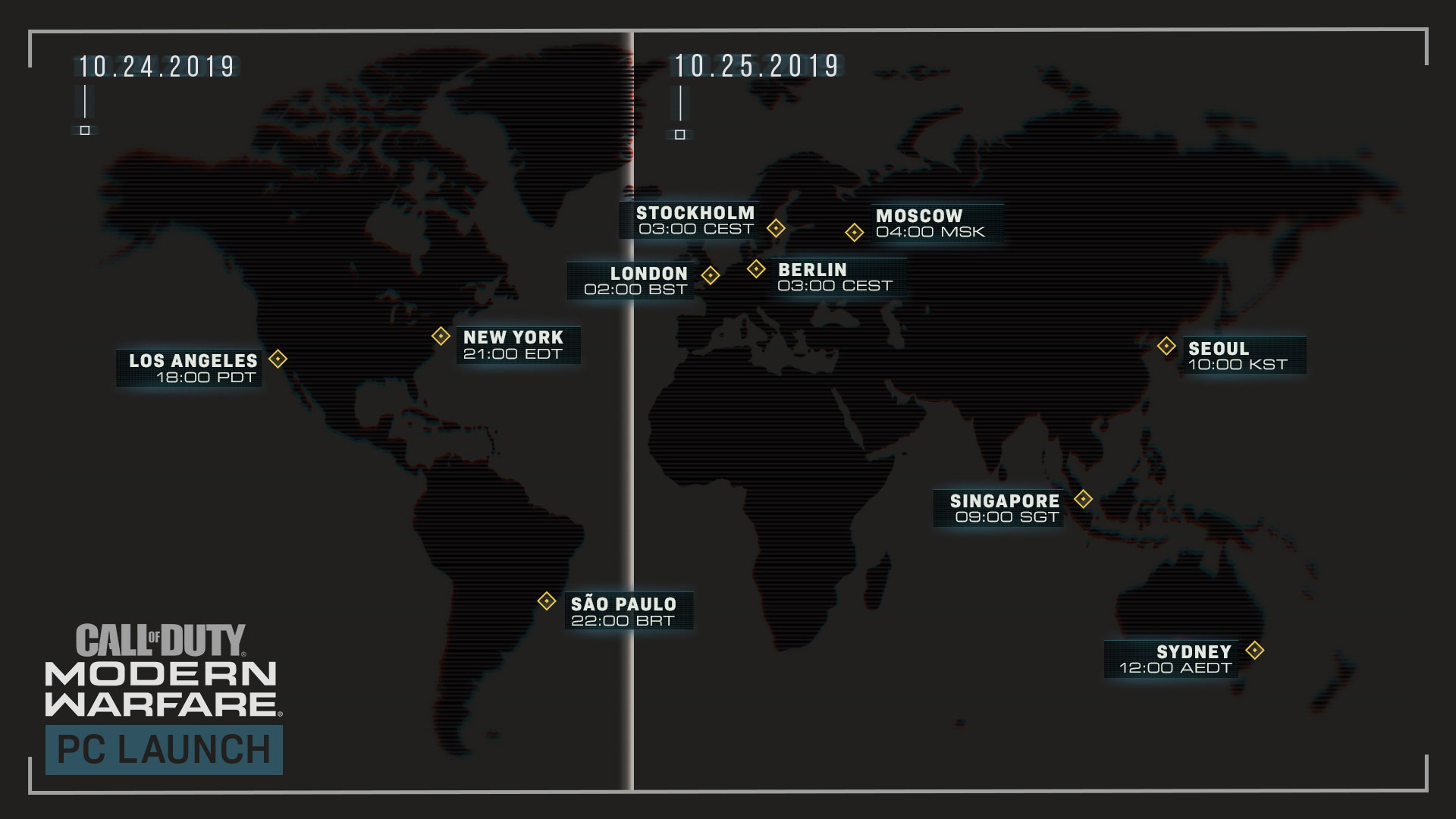 今日在《使命召唤:现代战争》官方的博客更新中,动视终于公开了PC端玩家解锁《使命召唤:现代战争》的精确时间! 下图为官方给出的全球对应游戏解锁时间,距我们国内最近的是韩国首尔时间,换算成北京时间那就是10月25日的上午9点整!想要第一时间体验游戏的小伙伴们请做好准备。 另外,对于PS4和Xbox One的数字版解锁时间,动视建议玩家查阅各自库中的游戏详情,来获得不同地区的各自解锁倒计时。而根据CharlieIntel的报告,除北美区外,世界大部分地区《使命召唤:现代战争》主机端都会在25日凌晨解锁。 双主机端的游戏如今都已经可以进行预载,而PC端经过动视官方澄清后需要的预载空间也为70G,玩家可以于23日开始预载,两天的时间对大部分玩家的网络环境来说还是赶得上的。 |