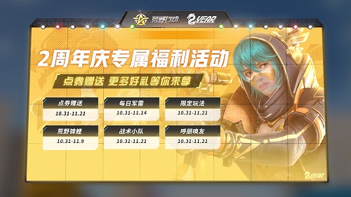一起欢笑一起跳,《荒野行动》欢庆二周年,众多好礼送不停! 10月31日至11月21日,《荒野行动》周年庆福利活动盛大开启!不仅有点券直接任性送,还有每日军需等你抽!多重福利惊喜享不停,一起来共度荒野周年庆吧! 【上线即送 军需点券】 荒野行动二周年,登录即可领点券,每日签到抽军需!10月31日至11月21日,周年庆期间登录游戏后,即可根据玩家过往战斗数据的历史表现,获得相应数量的点券奖励。 10月31日至11月14日,每日登录游戏及完成任务,荒野精英们均可获得周年庆军需开启次数在内的各种奖励:1. 每日登录即可获取周年庆一次免费抽取军需的机会;2. 每天参与一场战斗(任意模式)开启二周年精英福袋。只要准时上线,海量福利等你领! 【荒野锦鲤 好运附体】 《荒野行动》二周年,还贴心的为一路相伴的玩家们准备了惊喜大礼!在10月31日至11月9日期间,荒野锦鲤在线抽。每晚20:00,21:00,22:00将进行三次抽奖,从在线玩家中随机抽取获奖者,送出周年庆特训军训,珍稀座驾和5000元现金,只要你保持在线即可参与大奖!二周年庆独家壕礼任性送,打开游戏准时参与,下一个荒野锦鲤就是你! 【抢占蛋糕塔 欢庆二周年】 周年庆创意工坊新玩法“抢占蛋糕塔”来袭!在街区战境地图中,来一场4V4的蛋糕争夺游戏吧!在己方蛋糕数量达到200后,坚持20秒决胜时刻,获得最终胜利。落后也不要灰心,击败对手也有机会拾取对方掉落的蛋糕,反超扳回胜利天平。抢占糕塔,甜蜜争夺!参与即可获得大量二周年作战徽章,兑换专属奖励。快来体验蛋糕塔的速度与激情吧! 《荒野行动》周年狂欢,超多福利、限定军需、每日福利等空降荒野大陆,相信各位玩家定会在周年庆中收获满满!快前往官方网站下载最新版游戏客户端,叫上你的战友们一起来《荒野行动》享受多样的游戏体验吧! 上网易大神,看荒野独家爆料!网易大神是网易游戏旗下的精英游戏社区。这里汇聚了广大精英玩家、游戏圈红人、行业大咖,集合了官方资讯和福利趣闻,旨在为玩家打造一个丰富的游戏兴趣社交圈。下载网易大神,关注《荒野行动》官方账号@荒野行动,第一时间获取维护公告、游戏爆料,还有海量福利等你来领! 网易大神下载地址:ds.163.com 荒野行动官方大神号:@荒野行动 官方网站:hy.163.com 官方微信:网易荒野行动 官方微博:@荒野行动官方微博 |