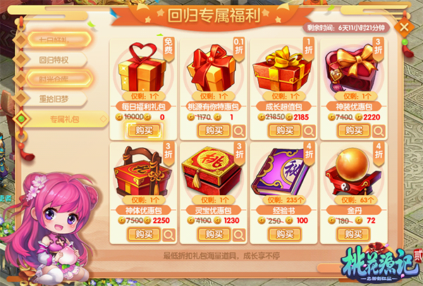 归心不改,故人可期。好玩不坑钱的良心回合游戏《桃花源记2》回归新服“纸短情长”将于今日中午12点准时开服,小伙伴们进入新服,即可享受各项开服好礼活动!此外,大桃在《桃花源记2》官方公众号还给大家准备了有趣的小活动,新服的小伙伴们参与活动还有机会获得新服专属尾标,桃源村的“人气王”会是你吗?来试试看吧! 《桃花源记2》史上最大的回归活动将同步展开,回归老服、去往新服皆有超值福利! 【强力BUFF 情缘再续】 活动时间:11月8日12:00-11月15日0:00 活动对象:账号在10月期间未登录,角色等级≥50级,回归老服 大桃妹妹和天晴哥哥会合力给回归的少侠上一层金光闪闪的BUFF,不仅能变强还能让少侠变得受欢迎!“情缘再续”专属回归任务,只要听告白就能拿到巨额经验和物品奖励,这种好事哪里有?这里就有! 大桃的祝福:御前、宝藏、副本、将星、十二宫、妖王觉醒、帮派入侵)时有20%的经验加成,且可以额外获得40%的江湖名望。(大桃的祝福对队友也生效) 天晴的加持:输出职业增加10%的伤害效果,辅助职业受到的伤害减少10%(PVE生效) 【七日好礼 登陆就送】 活动时间:11月8日12:00-11月15日0:00 活动对象:账号在10月期间未登录,角色等级≥50级,回归老服 少主回归老服即可连续七天免费领取皇室家具,紫装任选包,高级玄灵丹,熊宝魂*10等超值壕礼! 【时光仓库 珍藏礼包】 活动时间:11月8日12:00-11月15日0:00 活动对象:账号在10月期间未登录,角色等级≥50级,回归老服 桃花2的少主们都知道,大桃最喜欢送礼包了,不止每周更新送礼包,大节小节送礼包,连“足球日”和“联合国日”这种日子都要送礼包,时光仓库珍藏了过去三个月所有的节日礼包和更新礼包,少主错过的时光,大桃尽力为你保留了! 【重拾旧梦 专属礼包】 活动时间:11月8日12:00-11月15日0:00 活动对象:账号在10月期间未登录,角色等级≥50级,回归老服 少主回归后可能会有些茫然,我是谁?我在哪?我要做什么?莫慌,大桃帮你安排复健计划!连续七天,每天都有不同的小任务,跟着大桃走,重拾桃花记忆,找回当初的美好时光!我们还为回归少主准备了一个宝库,不仅可以每天免费领取免费回归礼包,还可以超低价购买其他福利礼包! 【专属称号 量身打造】 活动时间:11月8日12:00-11月15日0:00 活动对象:所有前往新服的玩家。 回归活动期间,所有前往新服的少主都可以获得属于自己的专属称号。 如果你离开很久,蓦然回首又发现灯火阑珊处的《桃2》,在新服重新开始你的武侠冒险,你将获得“阔别重逢”称号; 如果你已经是桃源的一代大侠,但是高处不胜寒,渴望新的征程,想要在新服开启一段新的桃花故事,你将获得“重新出发”称号; 如果你是个快乐的萌新,渴望热心帮助的小伙伴,那么大桃来帮你打个记号,你会获得“桃源萌新”称号。 【超值返利 升级就送】 活动时间:11月8日12:00-11月15日0:00 活动对象:所有前往新服的老玩家 老玩家前往新服“纸短情长”,不管是不是回归玩家,都可以获得金票返利,返利的金额和少主在老服的角色等级和累计充值有关,最高可达100000金票! 还有一份重逢礼包,送给选择在“纸短情长”重聚桃源的你~ 【呼朋唤友 结伴同行】 活动时间:11月8日12:00-11月15日0:00 活动对象:所有玩家 回归活动期间,少主通过老友接待使,召回自己的好友,即可获得老友积分。 老友积分可以抽取珍稀灵兽任选包、精灵之魂任选包、带属性永久称号等超多丰厚大奖。 左手珍兽右手基友,重聚桃源浪迹天涯,快乐无边! 好玩不坑钱的良心网游《桃花源记2》史上回归活动即将来袭! 回归活动专题:http://thyj2.game.360.cn/event/reunion.html 官网地址:http://thyj2.game.360.cn/ 下载地址:http://thyj2.game.360.cn/list/load.html 官方微博:http://weibo.com/yjhcol 官方论坛:http://bbs.youxi.com/forum-1112-1113-1.html |