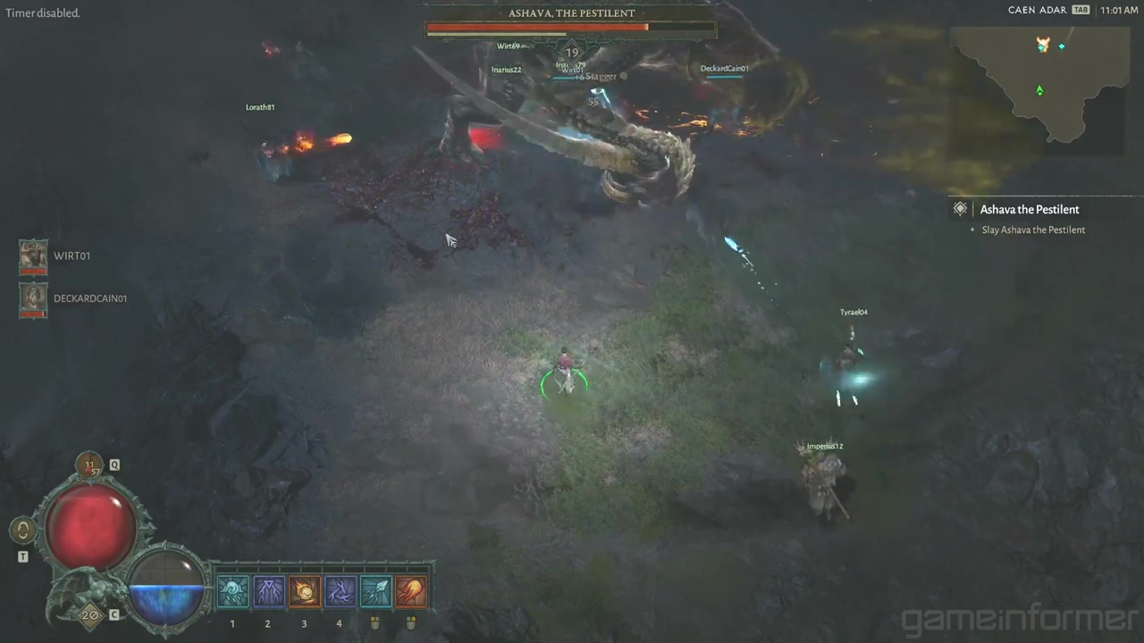 继三大职业的20分钟演示后,外媒GameInformer又带来了一段《暗黑4》的世界Boss战斗演示。在演示中,操作者使用的是法师,和其他玩家一起打世界Boss。 演示视频: 在战斗中,法师可以使用自身的向前冲刺技能躲避攻击以存活。释放的技能不外乎就是冰火电三种,可以看到普通攻击就是冰系,也可以召唤陨石。 世界Boss尽管看起来很笨重,但稍有不慎被挠到,就会出现血量见底的情况。世界Boss还会不时喷出AOE范围相当大的毒气。在视频中操作者还被世界Boss打死,然后不得不在检查点复活。 从视频看,由于法师身板太脆,外加自身的职业设计,所以打世界Boss适合从远距离攻击,不宜近战。不过施展大招时,自身似乎处于狂暴状态,化作一个电团战斗。 世界Boss击杀后就是大家喜闻乐见的捡装备时间了,脸好的话可能会掉落稀有物品。 《暗黑4》采用暴雪开发的新引擎打造,登陆PC,PS4和Xbox One平台。 |