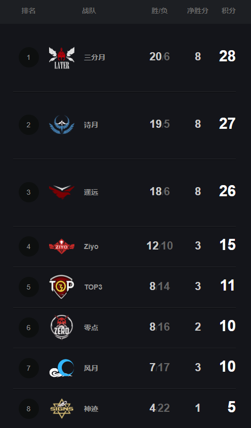 逐梦前行,剑指巅峰!由电魂主办、奥义电竞承办的2019《梦三国2》职业联赛(英文简称:MPL)秋季常规赛已于近日开启第五周赛程,随着第一支降级战队的确定,也正式宣布进入秋季常规赛倒计时阶段。在11月17日MPL秋季常规赛结束前,季后赛和保级赛的资格仍存有三大悬念等待揭晓。 悬念一:诗月横扫第一梯队 榜首之争谁是赢家 在第四周常规赛赛程结束的同时,三分月、遥远、诗月三队凭借出色的发挥,大幅领先的积分,率先锁定MPL秋季季后赛的三个参赛席位。截止至11月13日,三分月、遥远、Ziyo三支战队都曾在比赛中负于诗月,诗月可谓横扫第一梯队。 常规赛积分榜 现在榜单前三名战队各自之间的积分差距仅有1分,但三分月仅剩1场比赛,遥远虽与诗月各剩2场比赛,可遥远积分和胜场都低于诗月。常规赛榜首之争愈演愈烈,具有强大实力的三支战队能抓住最后的机会,成为常规赛的最后赢家? 悬念二:季后赛最后一个席位花落谁家 Ziyo在常规赛前期平遍赛场多日不胜,中期发力升至榜四,但此后Ziyo无缘跻身前三,只能死守第四名成为季后赛的“守门员”。Ziyo与排名第五的TOP3各剩3场比赛,但目前Ziyo积分和胜场两方面均占较大优势,而且在剩余对手排名和实力来看,TOP3的劣势会比Ziyo更大一些。但赛场变数一直存在,TOP3也曾打出过“以弱胜强”击败诗月的经典比赛,作为优势最大的Ziyo仍需绷紧“夺3分”的弦,直到最后一刻。 悬念三:命悬一线,零点风月保级资格争夺白热化 积分榜的保级区与降级区争夺异常激烈,11月12日,零点2:0击败神迹,夺下关键3分。神迹总积5分,仅剩1场比赛,已经提前确定无缘保级赛,成为第一个确定降级的秋季赛战队。11月13日,零点0:2不敌风月,无限接近降级的风月拿到关键3分,积分追平零点,续命成功! 11.15-11.17常规赛对阵安排 目前,风月虽与零点积分一致,但其胜场数仍低于零点。之后风月和零点各剩2场比赛,而以1分之差领先的TOP3战队尚有3场比赛,现下谁能获得保级资格犹未可知,保级区的悬念被延续。虽说零点与风月目前的情况更像争夺1个保级赛资格,但两队也并非没有机会挤掉TOP3,同时抢到保级赛资格。 2019MPL秋季常规赛收官倒计时3天,常规赛三大悬念揭晓的时刻即将来临,锁定虎牙直播“电魂直播间”直击赛场动态最前沿! 戴尔G系列专业智能游戏本 高性能当道,缔造专业游戏本!戴尔G5最高搭载第八代智能英特尔? 酷睿? i7处理器,144HZ窄边框屏幕兼有IPS防眩光功能,牛角式超强散热,游戏战斗零负担。白色高颜值外观,超高性价比,满足你对游戏的不同需求。拥有更高性能的2019款戴尔G7笔记本电脑也备受硬核玩家喜爱,采用第九代智能英特尔? 酷睿? i7处理器。叠刃设计和高光泽装饰线打造独有外形,19.9毫米的机身更显轻巧,将精彩随身携带在身边! 关于《梦三国2》 《梦三国2》是一款杭州电魂网络历时两年打造,打破传统定义的国风竞技MOBA类游戏。作为电魂王牌游戏《梦三国》的正统续作,《梦三国2》保留了《梦三国》的三国文化背景和基础玩法,并在游戏画面,游戏内容、游戏系统上做了大量创新,添加了许多全新地图和全新竞技玩法。百位三国名将,多元竞技玩法,全服匹配,激爽对战,满足你的一切竞技幻想! 更多详情请关注: 《梦三国2》官网:https://www.m3guo.com/v2/ MPL官方网站:http://mpl.m3guo.com/2019/index.html |