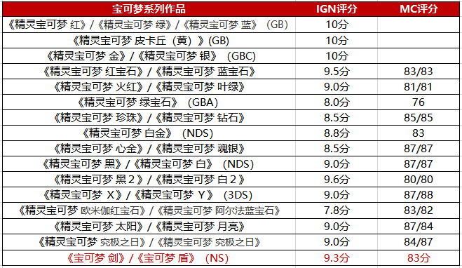 但《宝可梦:剑/盾》又做错了什么吗?IGN高达9.3分的评价,又真的是在“尬吹”吗?事实上,IGN对于Pokémon有一定的偏好,在精灵宝可梦第一到第七世代作品中,都给出了极高的分数!