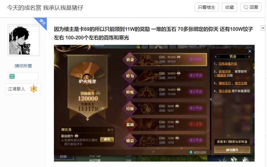 “我靠这还是我玩的游戏嘛?”本周四逆水寒更新后,所有玩家都疯狂了。 据悉,是因为逆水寒面对全服玩家开放了一项狂撒福利的活动——武林成名赏。 逆水寒的成名赏系统,可以看作是游戏为鼓励玩家而设置的特殊成就系统。只要玩家在装备、战力、修为、修炼等基础成长体系中有所建树,就能按阶段领取丰厚的阶段成就,包括几百万交子、几百万技能交子、数百百炼令、寒光令、洗髓丹等珍贵道具、数十万庄园资源和几十件紫色装备等等。除了直接的奖励之外,成名赏还给与了玩家永久性的每周增产增益BUFF。 有玩家仔细的算了一笔,更新后每个玩家普遍都可利用官方的福利提升至少三千分,换算成真金白银,这价值起码也得有个四位数的人民币了。如果是高战玩家的话,15万战力拿全,奖励总价值超过3000元。即便只有不到平均10万左右战力,也能拿到1000元以上的奖励,并且可以随着战力提升逐步获取剩下的奖励。 而且这次,不仅福利多,领取门槛也低!在逆水寒开发组坚持的“增产降耗”的结构性改革策略下,成名赏的领取基础非常低,可以说是零门槛的”全民福利“。 从天而降的福利,直接砸懵了玩家,第一波已经领取了福利的玩家兴奋的在官方贴吧和微博上发帖手把手在线教学,甚至摆事实讲道理给其他玩家分析这波红利。 不仅福利多门槛低,而且在这次全服福利的投放中,官方还优化了领取机制,玩家只要打开自己的人物角色面板,就可以在左下角点击按钮前往成名赏界面,官方还贴心的为玩家们设置了如何变强的战力提升指引。 有一说一,这波更新,小编我先真香了! |