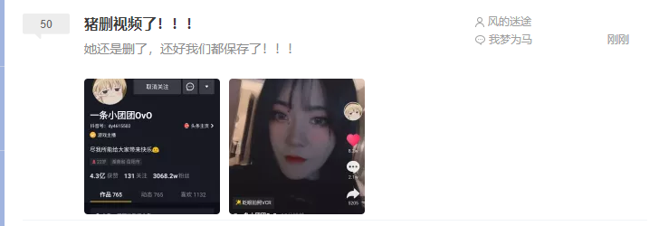 绝地求生主播小团团@一条小团团OvO,昨天发布了露脸的真人微笑视频,配上文案“自信的微笑就说有没有感染到你们”,3小时轻轻松松收获了168.6w赞,比以往作品点赞量都高,不过目前小团团已经把露脸视频删除了。 高人气女主播小团团终于露脸了,对于广大瓜友和虎扑直男们来说,这是一件值得讨论的事情。因为可能每个人心里都想知道,小团团到底长什么亚子?会不会是下一个乔碧萝? “一条小团团OvO”,斗鱼TV签约主播、游戏视频自媒体UP主。在直播中,她以搞笑、可爱的萝莉变声,不走女主播靠颜值、身材直播的老路子,独具一格不露脸直播,魔性的假哭和大笑声线,可以说是非常洗脑,疯狂圈粉爆红。 和另一位主播陈死狗,两人搭配的“团狗双排”,也是又甜蜜又奇葩。凭借这个直播风格,小团团在斗鱼仅用了一年时间,粉丝就突破了一千万,成功干掉了斗鱼一姐呆妹儿。 目前直播间拥有1273万粉丝,抖音3069万粉丝,千万量级的吃鸡女主播,备受玩家关注。根据以往直播及小团团自己的描述,网友们都猜测小团团是可爱、甜美的小萝莉,而且应该是个胖胖的女孩子。 不过在抖音视频中,我们看到的小团团确实一个御姐风格的小姐姐,黑长直搭配空气刘海的发型,灰色美瞳,偏橘色口红,珠光眼影,浓妆淡抹中有几分网红美女的即视感。小团团为了配合拍摄抖音“眨眼拍照VCR”的特效,还搞怪最后故意露出了双下巴。 在鱼吧,粉丝们自嘲自黑,表示“猪删视频了!但还好我们都保存了”,哈哈,成功把小团团删掉的视频手快截图保存了下来。 甚至皮一点的粉丝还表示:“你看这下巴,多双”,顺手制作出“介绍一下,这是我女友”的表情包。 “介绍一下,这是我女友”表情包 “你看这下巴,多双” 果然是自家粉丝,调侃起爱豆来毫不留情,不过最后他们还是很暖地表示:害!还是要爱你啊!团团的双下巴,awsl! 不过虎扑直男们可没有这么奶思。在小团团露脸了的话题下,有直男逻辑分析的,比如“按照一般美女的心理,如果很漂亮的话早就露脸了。同理虽然LOL小智一直说自己是葫芦岛吴奇隆,肯定不帅。 ”此处应该有一个LOL小智:??? 也有一针见血直接指出,“都闭关修炼+ps还是这样……大概率是乔碧萝2.0”,甚至他们还以“颜值即正义”,表示有心理落差。不过也有认为有趣就行,小团团也天天自称老母猪,一个娱乐主播能够搞笑,娱乐大家就够了。 讲道理,小团团吃鸡技术并不差,在带水友、路人吃鸡中可见,是小编一直保持关注的一位游戏主播。关于小团团为什么露脸了的疑问,一方面猜测是小团团可能要开抖音直播,另一方面或许也只是为了回应粉丝,一发一删之间,没想到都能成为热点,对此话题,你又有什么看法呢? |