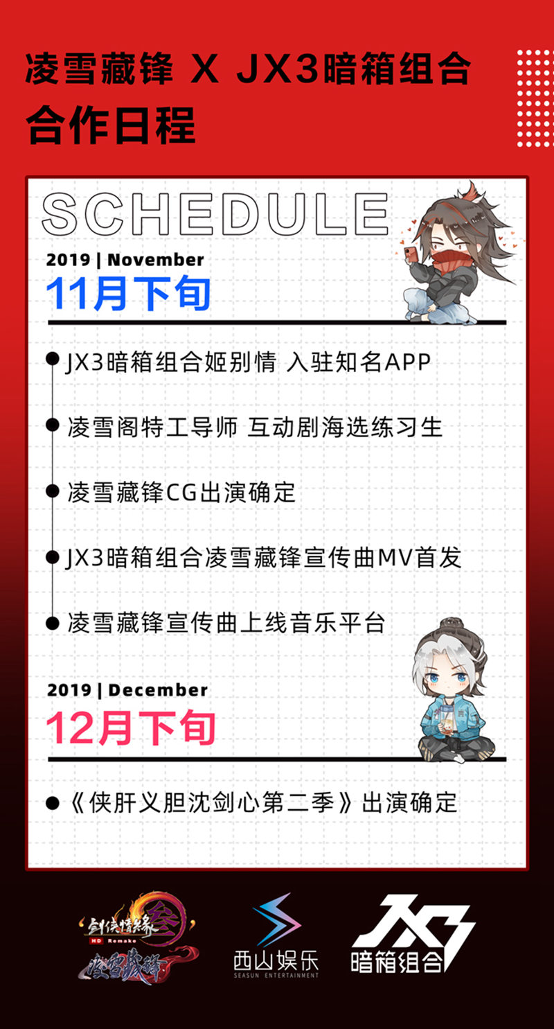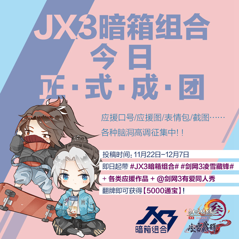《剑网3》全新资料片“凌雪藏锋”将于11月28日公测,技术升级极速优化,海量内容更新!凌雪阁“代言人”计划一经亮相,引发众多侠士的猜测和关注!随着公测日的临近,谜底今日揭晓! 曾风靡江湖,席卷八荒,长安城风头一时无两的刺客组合“暗箱”再度合体,正式签约@西山娱乐 今日重出江湖!组合成员JX3暗箱-祁进、JX3暗箱-姬别情两位侠士们熟悉的人物突破次元壁,并以全新偶像男团“JX3暗箱组合”姿态亮相!一起为大唐江湖创造更多颠覆创新的可能! 2019年11月28日14:00 新服开放 双线四区 凌雪藏锋 【出道资源即拉满 “暗箱”男团近期行程曝光】 作为@西山娱乐 所推出的偶像男子偶像团体“JX3暗箱组合”!出道资源即拉满资源!成员姬别情将入驻某知名记账APP,以贴心管家的身份随时随地与侠士互动! 11月25日“特工练习生”互动剧海选,在姬别情的引导下闯入平行时空,侠士将以凌雪阁特工的身份改写安史之乱的走势,诸多分支故事等待侠士通关揭晓。 《剑网3》凌雪藏锋CG大片,引出门派秘境剧情,为侠士再现当年大唐盛世时,凌雪阁与李林甫的首次交锋,撞破李林甫与九天幽天君无名的秘密交易。身着凌雪阁服装的祁进形象将首次露面。 庆《剑网3》新资料片公测,“JX3暗箱”组合还将发布再出道首支全新单曲!诸多活动即将陆续解锁,11月下旬行程安排今日抢先预告,赶紧锁定资讯君为大家带来的第一手咨询!全新起点,请多关照! 【后援会现场成团 应援活动拉开序幕】 久别重逢,怎能少得了侠士的有爱应援?面对喜爱的“暗箱”组合,相信侠士们心中一定会有很多的想法与脑洞!即日起至12月7日,@西山娱乐 经纪公司将携手@剑网3有爱同人秀 展开“JX3暗箱组合”应援征集活动!爱称/应援口号/应援图/表情包/精美截图,赶紧带上你的创意与作品前往微博#JX3暗箱组合##剑网3凌雪藏锋#并@剑网3有爱同人秀,翻牌既可获得5,000的通宝奖励! 12月初@西山娱乐 还将与半次元、克拉克啦开启新一轮“剑网3偶像企划”合作,举办漫画、插画、配音、小说同人大赛,现金奖励、精美周边、特效挂件【舞歌千城】等你拿! 【玲珑密保锁上线全新功能 禁言锁已经安排 】 在侠士们为“JX3暗箱”组合尖叫呐喊之余,资讯君还将为大家带来一个好消息!为了更好保护侠士游戏账号安全,侠士们期待已久的玲珑密保锁APP4.0.5版本【聊天频道保护】功能也已经正式上线,开启【聊天频道保护】后,登陆游戏将被禁言,使用聊天频道需解锁。 安卓玲珑密保锁APP 4.0.5版本将于昨日正式上线,已安装APP的安卓用户可在“设置”-“检查更新”处升级。iOS玲珑密保锁APP 4.0.5版本也将于近期上线,敬请期待! 未安装玲珑密保锁APP 的用户,可前往玲珑密保锁官网进行下载。 |