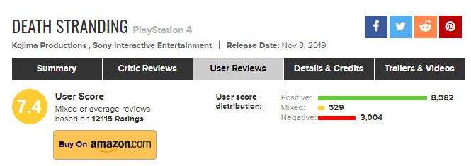 《死亡搁浅》超6000条差评被删除 MTC玩家评分升至7.4分