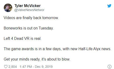 在很长时间没有开发游戏后,V社以《半条命》VR新作的形式再度进入这个市场。除了新作《半条命:Alyx》之外,V社也在开发其他的游戏。而根据传言,这其中可能就有《求生之路》新作,遗憾的是,这仍然是一部VR游戏。 近日推主ValveNewsNetwork发推称“《求生之路VR》是真的,TGA颁奖礼还有几天就来了,将会有《半条命:Alyx》的新消息。做好准备吧,将会让你大吃一惊。” 《求生之路》开创了一个四人合作打怪/僵尸的游戏类型,之后的很多游戏都是在此基础上进行的修改和融合。 值得一提的是,《求生之路》系列开发商Turtle Rock被V社在2008年收购,但后来于2011年脱离了V社,成为一家独立的公司。在推出《求生之路2》后,该工作室后来开发了《进化》,由2K发行,但影响力和商业成绩显然不及《求生之路》系列。 |