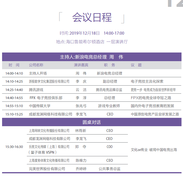 2019年度中国游戏产业年会分论坛日程曝光