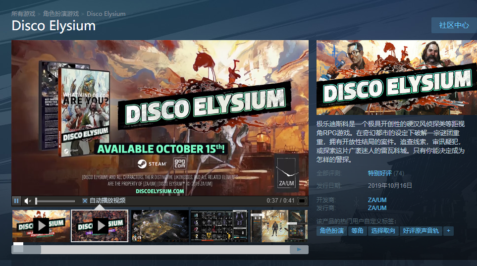 TGA2019颁奖盛典正在直播中,在乐队表演结束后颁发出的首个奖项为“年度最佳叙事奖”——《极乐迪斯科》。 其他获得提名的游戏有《控制》、《死亡搁浅》、《外部世界》等。 开发商ZA/UM的侦探风RPG《极乐迪斯科》一发售,这款画面精致、内容饱满的游戏MC均分就稳定在了90分,碾压了不少大作,获得IGN96分评价。 《极乐迪斯科》是在一款奇幻都市设定下,极具开创性的硬汉风侦探类等距视角RPG游戏。 你将扮演一位落魄潦倒的中尉侦探,身处堕落的港口城市雷瓦科城,这里腐败横行,谋杀案一波未平一波又起,青少年们也整天只想着蹦迪。你在其中或是搜寻线索,审讯疑犯,或是探索这座广袤迷人的手绘城市,揭露它深埋的秘密。与此同时,局势逐渐恶化,城中冲突加剧,危机一触即发... |