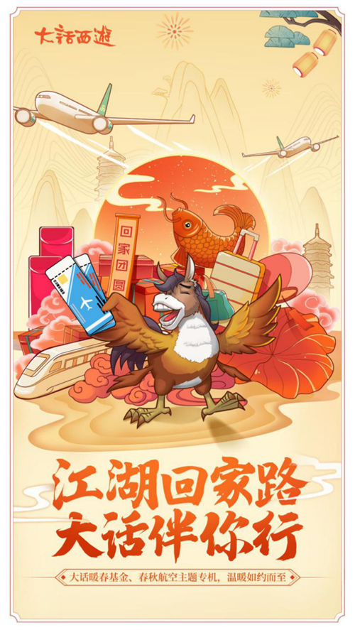 在外一年的辛劳,都会被新春回家团聚的温暖化解!2014年,一辆从郑州开往新乡,载着20多位大话玩家的专车开启了暖春回家之旅。六年暖心时光,大话用上百万元帮助了无数大话玩家无忧回家,暖心过春节。今年,大话情义依旧,我们将继续为玩家送上我们的暖春回家红包。不仅如此,我们还将携手春秋航空,全面升级暖春福利——大话专机、1元无忧购机票、免费机票抽奖活动都将逐步开启!今年暖春,“大”不一样! 江湖回家路,大话暖心伴你行 最暖是团圆,回家过大年。年关将至,大话希望每位兄弟都能在一年的辛勤工作之后,无忧舒心回家团圆过年。每年的这个时候,我们都希望能够给大家带来更多的暖春好礼,也让更多的玩家能够享受到大话送出的福利。今日,2020年大话2暖春活动正式开启! 火车,汽车,飞机?无论你选择了哪一种回家的方式,我们都会为你送上暖春红包,报销你的回家路费。填写真实报名信息,分享你的新年回家故事,就有机会成为今年暖春福利的幸运儿! 报名时间:即日起至2020年1月16日 报名方式:分享你的新年回家故事,暖心的、趣味的、创意的,或是你的大话归家囧途都可以,官方将会根据大家提交的全家福和回家寄语筛选幸运玩家,真诚送上大话暖春回家福利,为你报销回家路费。 专属航班送你上天 今年回家倍有面 今年,大话暖心回家福利还将升级来袭,我们希望每位兄弟都能觉得倍有面儿!我们携手春秋航空,承包了一架大话专机,所有大话兄弟均可免费上机,coser相伴、年货好礼免费领,我们和兄弟一起玩着大话、聊着天回家! 航班信息:2020年1月7日 14:25(航班号:9C8947)上海出发飞往西安 报名时间:即日起至12月30日23:59 报名方式:请填写问卷(链接:https://game.163.com/s/?id=392)并提交,问卷填写将于12月30日23:59截至,请有意参与的玩家尽快提交信息哦!问卷截至后,会有工作人员联系你安排后续事宜。 除此之外,我们还将承包大话玩家全年机票,和春秋航空一起,推出全年机票1元无忧购活动!陪着大话兄弟玩遍全球,看尽世界奇景!锁定大话西游2官网或官方公众号,时刻关注最新资讯,这些福利都是你的! 放下一年的疲惫,春秋一载,温暖到家!乘坐大话情义专机,回家舒心过大年!2020年大话暖春回家福利开启,愿你温情归家,情义常随! |