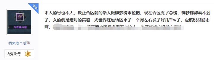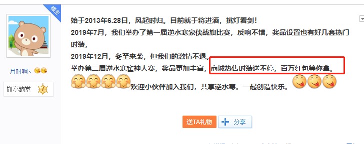 最近逆水寒里一个小伙火出了圈,原因竟是他PO出了一张被逆水寒里认识的50岁富婆女网友疯狂追求的聊天截图!据小伙表示,富婆先后向自己转账六位数,示爱过于疯狂简直让人招架不住。 听了小伙的哭诉,大部分玩家表示不仅不想帮他,心头还有点酸酸的:“不是,你们逆水寒的富婆都这么多吗?” 众所周知,逆水寒里最不缺的就是小姐姐,但是是否大家都对女玩家的消费观有着刻板印象呢?小编潜伏逆水寒玩家群体数月,终于明白了逆水寒这届小姐姐们到底都是怎么花钱的? 类型一:扶贫做公益型 逆水寒此前上架了一款苗寨风情的时装,官方介绍说联手雷山县“西江千户苗寨”是通过游戏进行的一次精准扶贫,这次所有苗族主题的时装带来的销售收入,都将以“全体逆水寒玩家”的名义捐赠给雷山县的教育事业。 来自逆水寒群龙之首服务器的女玩家一口气买了48套送人,算下来仅当天上午就花出去了五位数!而小姐姐则大气的表示:“反正钱放在哪也是放着,不如拿来支持雷山县扶贫工作组,做点有意义的事情。” 用玩游戏的方法做公益,赞一个! 类型二:千金赠知己类型! 有人为扶贫助力,有人则将钱花在了自家兄弟们身上。比如刀剑如梦的一位女玩家,就因为一句承诺,自己一个人拉扯了半年的帮会,也许各位看官会问了:这一个帮会,费钱能费到哪里去呢! 嗨您还真别说,平常为了激励帮众跑商,她坚持以高于市价50%的价格发了三个月商票,折合成人民币也得小一万,除此之外,打架有奖金,帮战有红包,隔三差五的还搞些小抽奖,更是花了五位数自费拍摄了帮宣视频来增加凝聚力! 帮会变成了小姐姐江湖梦的载体,千金赠知己,情义无价! 类型三:万金济天下型! 对有些逆水寒女玩家而言,舍得给自己花钱已经不算什么了,来到这个江湖就是缘分一场,她们的钱花在更无形的地方。 那姑苏绮罗的一位女玩家举例,在她在游戏中与情缘结婚的那一晚,来自逆水寒各个服务器的祝福,以及全服玩家们在屏幕上默默的整齐刷起了祝99的队形,都在暗示着这位小姐姐的受欢迎。 仔细一问,原来是因为这场婚礼的新娘“少女”在原来的服务器就是出了名了的仗义,刚刚转到姑苏绮罗这个区,新人初来乍到不知道怎么自我介绍,干脆就发发世界红包好了,据悉转区不到一个月就在世界上发了好几千万铜钱的红包。 这种“我有万金以济天下”的情怀,构成了小姐姐游戏的消费观。 从开服以来,逆水寒就凭借自己精美的画质和沉浸感的剧情体验,吸引了一大波女性玩家。不论是潜心公益默默献爱心的她,还是为帮会两肋插刀的她,亦或是万金赠知己的她,其实都是以逆水寒中女玩家为代表的新时代女性,她们体贴温柔有爱心,却也仗义豪爽有侠气,鲜明地彰显了新时代女性的全新面貌。 而每一位她们,都是逆水寒刀光剑影的江湖中独特的温柔的存在。 |