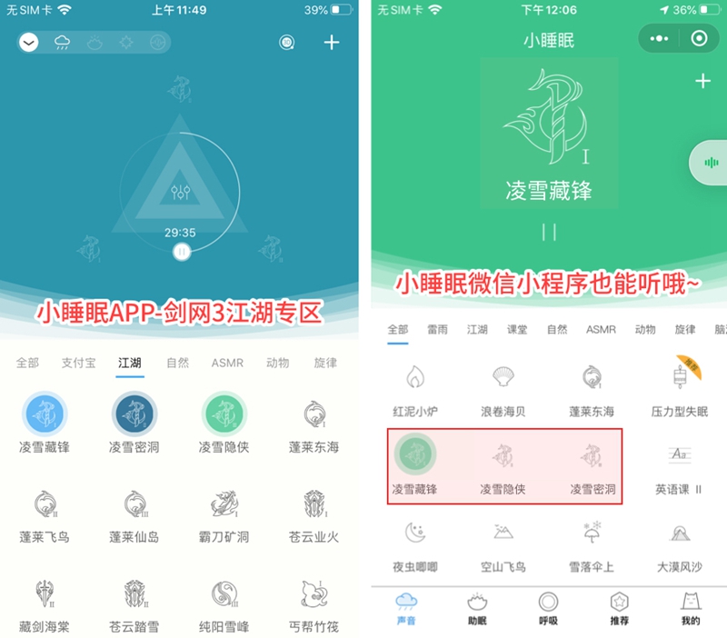 暗箱组合倾情入驻 《剑网3》凌雪阁自然音上线小睡眠APP