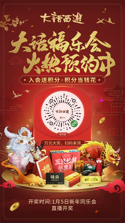 2020年正式到来,第七年的大话暖春福利活动正在进行中,百万点卡、88888福利大奖,包机送回家、全球年货街、暖心年夜饭应有尽有!今天,全新福利来袭!专为大话玩家打造的福利回馈平台——大话福乐会(测试版)全新上线,预注册火热开启!积分能当钱花,前2020名预约100%有奖!纯金金条、珍稀年手办、大话茶馆情义茶礼随便送!第七年大话暖春福利,我们“大”不一样! 积分当钱花!大话玩家专属福利回馈平台 为了回馈支持大话多年的玩家朋友们,在暖春同乐会到来之际,我们正式推出大话福乐会——专为大话西游玩家搭建的会员回馈平台!加入大话福乐会会员,大家上线玩游戏、参与大话举办的线上线下活动等都能获得积分,积分就是真金白银!能够兑换各种游戏道具、大话周边,让你独享众多令人羡慕的福利与特权! 前2020入驻百分百中奖,组团入驻抽年手办 初次见面,福乐会为大家准备了壕气满满的见面礼,所有成功进行福乐会预约的玩家,均可参与1月5日暖春同乐会现场的线上抽奖!前2020名参与预约100%有奖!纯金金条、网易味央黑猪肉年卡、六大品牌年货好礼、大话茶馆情义茶礼等数千份情义奖品等你来拿! 叫上好友组团进行预约,还有机会抽取珍稀年手办、2019鎏金宝鉴白金版哦!悄悄告诉大家,超过三人抱团预约,概率更高,赶快叫上兄弟来领大话送出的壕气大礼吧! 以上这些福利,都将在1月5日的同乐会直播中揭晓,请兄弟们务必锁定同乐会直播间,稳稳接住大话送你的新年礼物! 怕自己错过直播?别担心,扫描下方二维码即可开启提醒,暖春同乐会开播第一时间提醒你上线领奖励! |