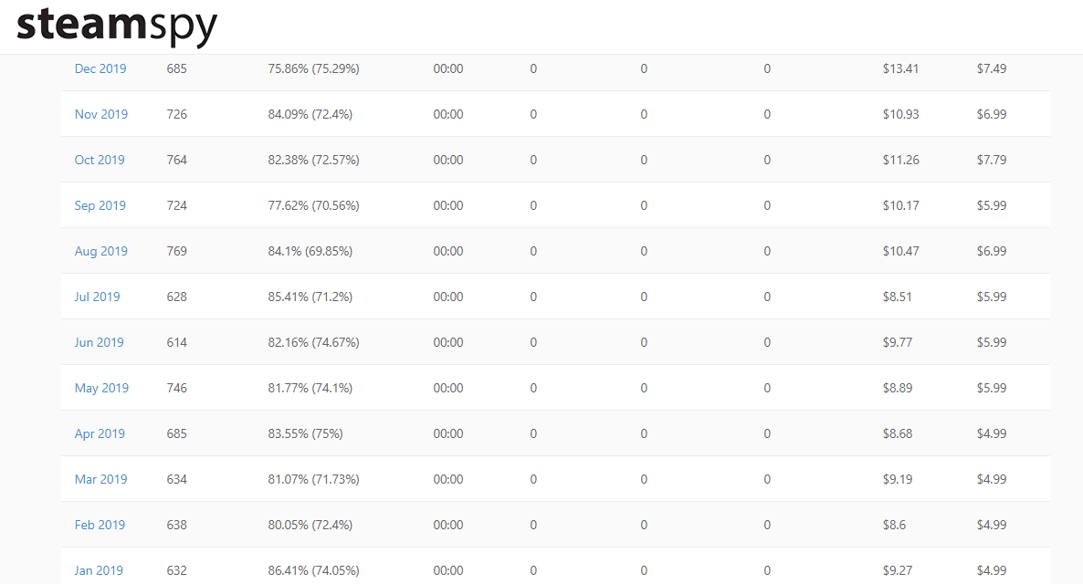 根据常年来提供细致数据统计的SteamSpy网站年度报告,2019年Steam这个全球最大的PC游戏平台总共发布了超8000款游戏,这意味着虽然面对着Epic的强力挑战和“挖墙脚”行为,Steam平台的新游戏数量并没有显著减少。 首先,SteamSpy的统计数字由于地区和DLC差异会出现细微误差,但不影响宏观判断。网站更新后给出的全年发布游戏数量为8326款,平均用户评分为73%,平均定价为9.97美金(70左右RMB)。 相比2018年的8234款发售量来说今年还是稍胜一筹,但是增幅明显放缓(2017年为6339)。因此分析师们认为8000左右的数字将作为近年来Steam上架游戏的饱和峰值,2020年可能会成为多年来首次Steam没能打破上一年游戏上架记录的一年。 另外SteamSpy还显示2020年1月Steam商城的总计游戏数量为34278款,相比2019年1月同期增长了7000。2019年Steam开始对库中的游戏上架进行严格筛选,并剔除了很多挂羊头卖狗肉的低劣游戏,相信2020年能够在Steam商城维持上架的游戏和以往相比要更少一些。 |
