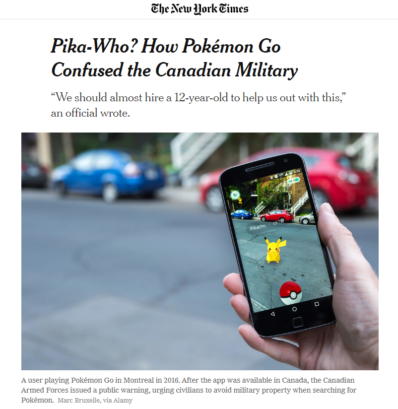 《宝可梦Go》玩家“入侵”加拿大军事基地 军方傻眼