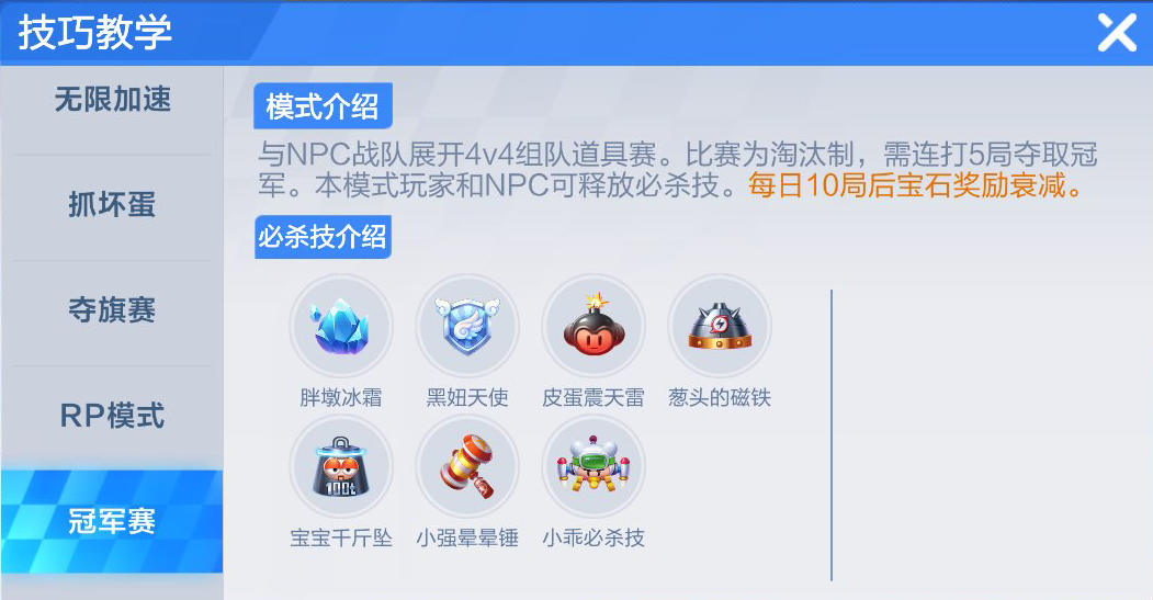《跑跑卡丁车官方竞速手游》以“全民漂移”这个暗号,再度集结粉丝!指尖漂移,用手游玩出端游键盘的手感!在跑跑端游中,游戏模式除了经典的道具赛、竞速赛、车队赛,还有可以过足瘾、玩出花的其他模式,比如冠军赛、挑战赛、BOSS战、极速方程、夺旗赛、RP赛等等,在《跑跑卡丁车官方竞速版》手游中,这些好玩的模式也同样得到了重现。 本次跑跑卡丁新春版本更新中,玩家期待已久,“千呼万唤始出来”的全新休闲模式“冠军赛”,以道具赛形式展开,全新的游戏体验,丰厚的奖励,瞬间成为车手们讨论的热门话题。老司机驾轻就熟,新司机则在手忙脚乱的道具攻击中陷入绝望,不必担心,小编马上为大家奉上详细的夺杯攻略,手把手教大家三分钟上手冠军赛! 冠军赛玩法:14支小队同场竞技淘汰晋级 冠军赛的游戏模式跟端游一样,是与NPC战队展开4V4道具赛,比赛为淘汰制,需连打5局夺取冠军,这就要求车手们必须组成满编四人队伍才可进入比赛。 和挑战赛玩法相同,道具赛是要与NPC对局,开始由红蓝两队共14支进行比赛,胜者晋级,败者止步本局。游戏开始都会有一个树状图,然后系统开始随机配对,5场比赛,分第一关、第二关、第三关、半决赛、总决赛。经过不断地淘汰(晋级),红蓝双方将各决出一支队伍进入决赛,并决出冠军杯得主。 为了更好地普及至所有玩家,冠军赛将以道具赛为基础展开。其中创新的加入了“必杀技”系统,每小局每个玩家可以释放两次必杀技。车手们可以在每一大场的准备阶段协商选用7种不同的人物专属必杀技道具(不必与所用人物相同),而在小局中场无法更换任何道具。 冠军赛道具:四个攻击型必杀技组合胜率高 除了学会了如何躲避防御NPC的必杀技,其余的就是与队友的配合啦。目前小编尝试过两攻击两防御、三攻击一防御、四个攻击三种队友必杀技组合,目前来看四个攻击型必杀技的组合胜率较高,且最好是等在最后大半圈的时候密集释放,前期只需通过道具跟住NPC不掉队,只需这样经过15分钟的“奋战,”等着各位车手的就只有前方的终点线啦。 很多玩家感慨“黑妞的大招根本不够用”,这是因为这里除了黑妞天使必杀技,其余均为锁定型攻击道具,且只有小乖必杀技攻击敌人后无法将对手拉停。绝大部分NPC必杀技的防御也只能由黑妞的必杀技来完成,同时黑妞天使必杀技也可进行降维打击,对普通道具进行防御。 冠军赛中除玩家必杀技外便是13支NPC队伍各不相同的必杀技了,其中武林战队、黑暗组织的必杀技最为鸡肋,玩家不必过度担心;海盗团、皮蛋、宝宝、皮蛋超人战队的必杀技为直接瞄准玩家攻击,所以成为了玩家重点防御对象;而滨海、宫廷、森林、幽冥、黄金、刀剑、龙之战队这七个战队的必杀技均可通过走位防御,且滨海与龙之战队均可通过盾牌与天使防御,车手们也大不必过于放在心上。 接下来小编就给各位车手带来可走位防御的必杀技技巧: 躲避宫廷战队 宫廷战队的大机器人只需要从旁边绕过即可,这也适用于下列的森林战队、黄金战队、刀剑战队。 躲避森林战队 躲避黄金战队 躲避刀剑战队 幽冥战队的墓碑只需要淡定穿行其中即可 滨海战队与龙之战队的必杀技均可通过普通盾牌与天使防御 这些必杀技都只需要随时注意右上角的释放提醒,提前进行走位,即可完美躲避攻击,等着各位车手的就只有前方的终点线啦。 冠军赛奖励:永久背饰头饰奖励拿到手软 冠军赛的主要特色“必杀技”系统以及防御策略讲完了,接下来当然要讲讲令车手们心动的丰厚奖励。首先,就是冠军赛的传统产出物:冠军杯。根据小编这几天简单体验下来,每天开十几个二十个冠军杯基本不在话下。冠军杯产出奖励也主要是冠军赛的“精美周边”:头饰、背饰、手杖、车贴气球以及即将登场的车手雯雯的喷漆以及雯雯车牌。目前小编已经开出了永久的背饰,不知道屏幕前有没有欧气满满的小伙伴呢? 当然出了模式本身的产出物,也少不了各种附属活动,比如能够拿到一辆“小乖卡丁车”的“冠军试炼”活动,只需把每一支队伍都打败一次即可拿到奖励,而且小乖卡丁车的特性不俗,较高概率防御闪电的特性简直就是无视闪电啊!小狮王更是瞬间感觉自己地位不保。 另外,冠军赛胜利后,也会获得彩虹冠军宝石,集齐一定数量的彩虹冠军宝石可以用于兑换冠军奖杯,这是每一支队伍实力和勇气的证明!当然啦,如果你每日完成冠军任务,同样也是可以获得大量的彩虹冠军宝石哦! 除此之外,在冠军赛房间侧面可以查看冠军人物,其中获得的冠军宝石还可兑换酷币和冠军杯,娱乐白piao两不误啊,收藏党们拿下一整套冠军赛周边,怕是要拿到手软了。 写在最后: 在对跑跑卡丁车端游的完美复刻上,跑跑手游似乎还没有让老玩家失望过,这次冠军赛也是毫不例外,从战队的数量,必杀技的音视频特效都绝对满足老玩家的要求。 但同样也有一些需要官方去优化的东西,比如小伙伴发现偶尔会出现双方必杀技释放却没有提醒,导致本可以躲避的必杀技却来了个措手不及;NPC有服务器加持,有了永不晕魔、偶尔瞬移的buff,但同时NPC又有着没有黑妞天使必杀防御以及几乎不防闪电的debuff,让玩家用纯攻击流打发“四个攻击必杀技”取得胜利的过程过于简单粗暴。 以上就是全部内容了,各位车友如果对冠军赛有不同的见解,欢迎补充交流~ |