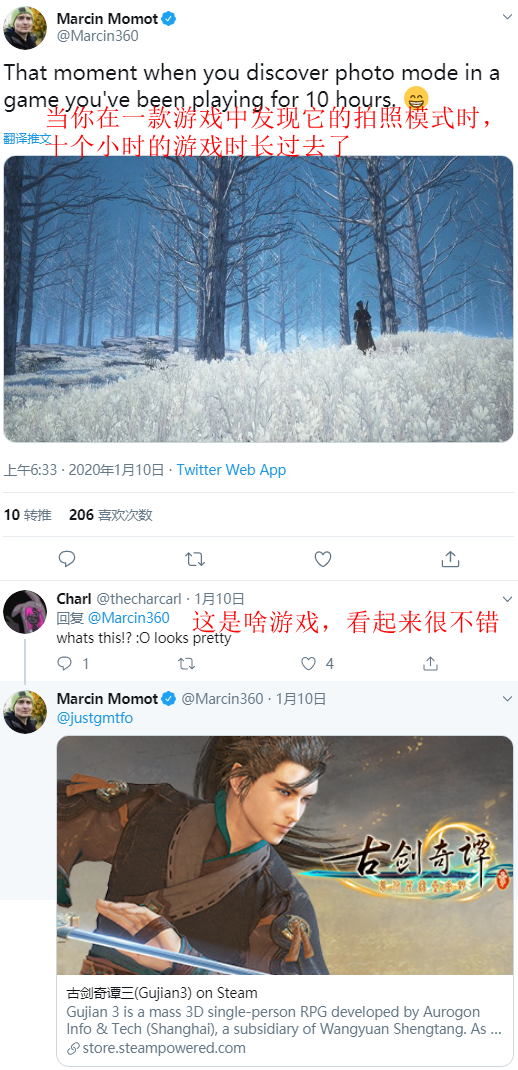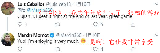 今日(1月11日),CDPR全球社区经理Marcin Momot发布推文,展示了一张《古剑奇谭3》的游戏截图,表示自己不知不觉就在这款游戏中度过了10个小时的时间,在回复中他还表示非常享受这款游戏。 Marcin的推文: 附上部分该推特下的部分评论: 有意思的是,《古剑奇谭3》官方也发现了这件事,还表示钓上了一条“大鱼”: 《古剑奇谭三:梦付千秋星垂野》是一款由上海烛龙开发,网元圣唐发行的动作角色扮演游戏,为古剑奇谭系列的第三部单人游戏作品。游戏于2014年12月立项,简体中文版于2018年11月23日上市。繁体中文版与英文版于2019年11月15日发布。 |