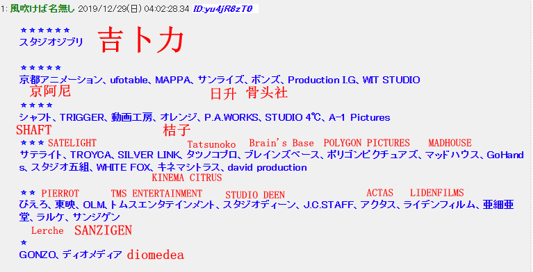 吉卜力登顶!日本网友晒出心中的动画公司实力大排名