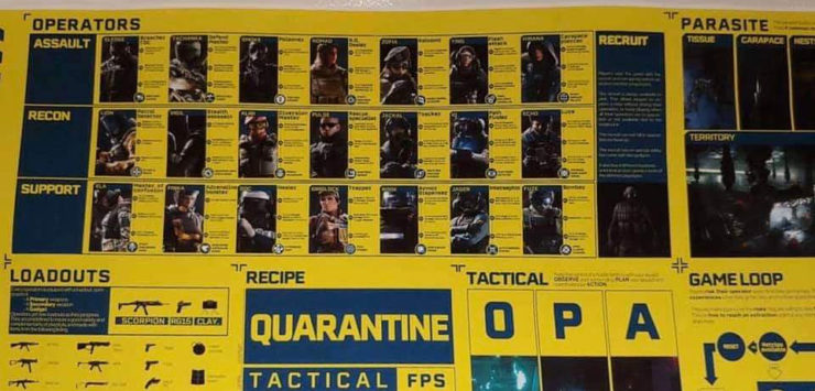 在E3 2019上,育碧公布了一个新作《彩虹六号:封锁(Rainbow Six Quarantine)》,但公开的相关细节很少。我们仅知道正式一个合作PvE游戏,延续《彩虹六号:围攻》2018年“爆发”活动的剧情,玩家将对抗被神秘外星病毒感染的人类。 不过最近Reddit上有玩家曝光了《彩虹六号:封锁》的新消息。根据看起来像是某种宣传文件显示,《彩虹六号:封锁》将从《彩虹六号:围攻》中借鉴很多内容,包括首发21个干员,被划分为突击兵,狙击手和辅助三个职业。 玩法将专注于4人合作,重玩性和紧张氛围。共有四种主线任务类型,包括破坏,分裂,护送和猎杀。次要任务包括收集,扫描和防守。敌人类型包括Grunt,Breacher,Rooter,Smasher,Ape和其他三个新类型敌人。 看起来《彩虹六号:封锁》的战役将在三个地点展开,它们是纽约,旧金山和一个叫做TRC的地点。每个地点都会提供3个任务。 最后,本作将会有微交易和自定义,武器和其他装备将有等级,从普通到史诗。 《彩虹六号:封锁》将于今年发售,登陆PC,PS4,Xbox One和次世代主机。 |