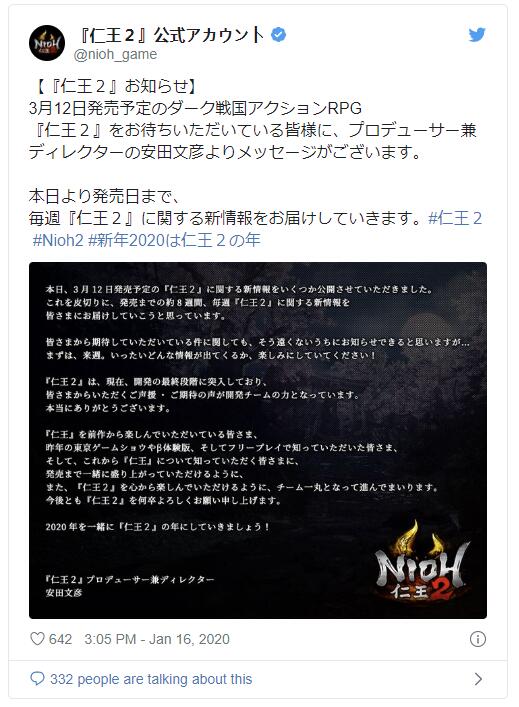 《仁王2》从现在到发行前每周都会更新相关资讯