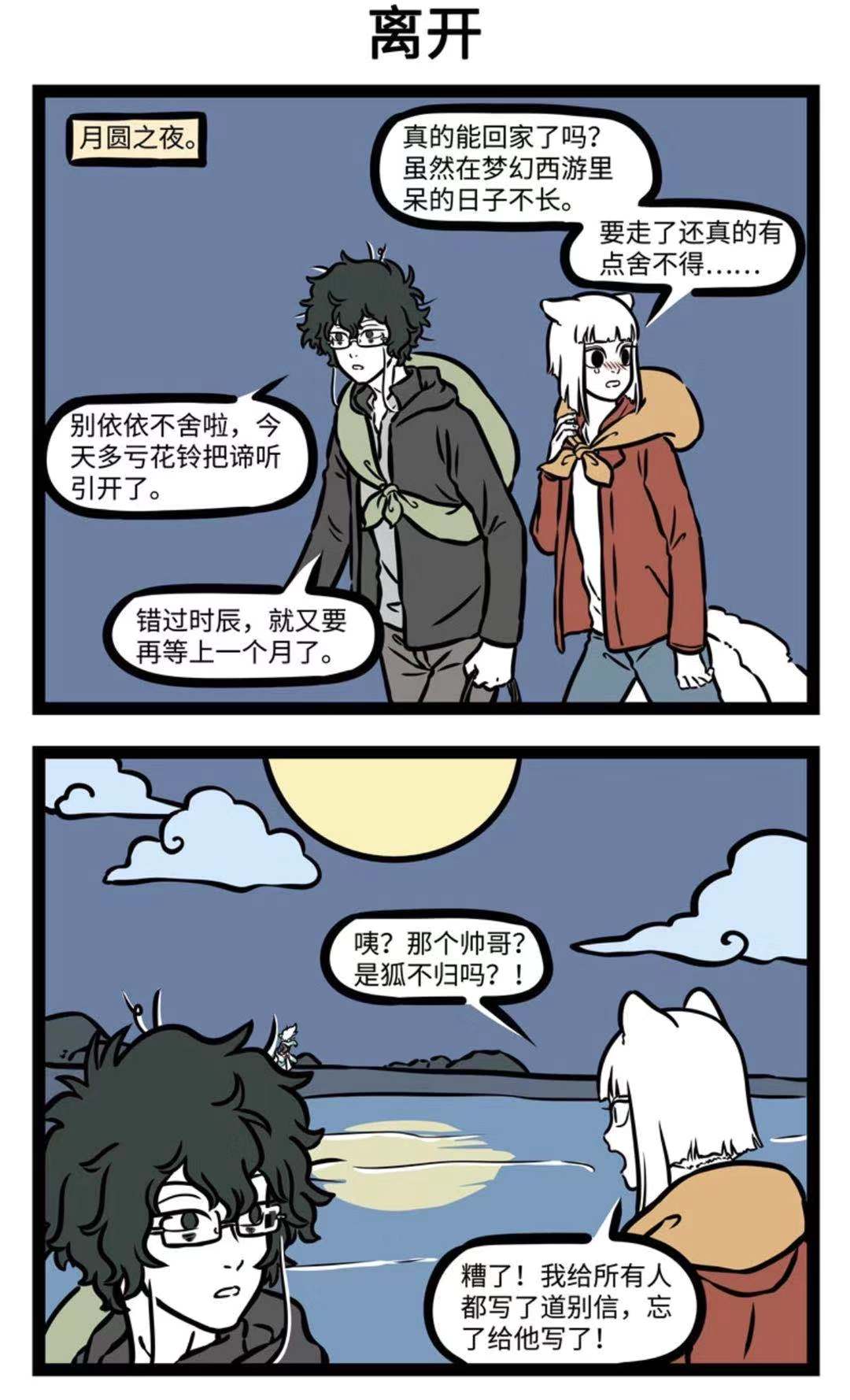 《梦幻西游》电脑版携手国内知名漫画家一汪空气打造的《梦幻西游》电脑版×《非人哉》条漫,现在正在各大平台火热连载中。在与小伙伴白泽碰头后,九月一行人的旅途也即将迎来终点。九月能否和白泽一起回到自己的世界,回归平静日常?在接下来的《梦幻西游》电脑版X《非人哉》特别篇第九、第十话上线,我们将迎来答案! 回归日常?九月旅途即将完结 不知不觉,九月和白泽已经在《梦幻西游》电脑版的世界中,与玩家度过了一个月时光。从初入三界的懵懂精灵,到结识了诸多三界知名人物的社交达人,九月和白泽的三界冒险,为玩家带来了无限惊喜。 如今,他们的旅途也来到了尾声。随着九月和白泽的回归自己的世界,往日的喧嚣也逐渐平静。那些过去的快乐,是真实的吗?这趟三界之旅,为九月和白泽带来了怎样的改变? 玩家在漫画中寻找答案时,想必也会理解,每一个玩家都和九月以及白泽一样,在游戏里收获的绝非虚假的友情,那些真情实感,就如同白纸上的墨印一般,永远无法抹去。 感动收官,数十万读者点赞《梦幻西游》电脑版×《非人哉》特别篇 在九月和白泽于三界冒险期间,诸多读者也一直在关注他们的旅途,通过微博为他们加油。在条漫连载期间,有超过二十万读者热情转发、评论、点赞相关微博,并在#非人哉号外# #非人哉梦幻西游特别篇#话题下,热情讨论剧情。 在九月和白泽的旅途迎来完结时,更有无数读者在评论区表达了对他们的不舍。虽然他们已经离开三界,但读者只要加入《梦幻西游》电脑版的世界中,就能继续续写他们在三界中所经历的友情故事,书写属于自己的传奇! 《梦幻西游》电脑版×《非人哉》特别篇现在已经落幕。但三界的故事并没有就此结束。在接下来,《梦幻西游》电脑版还将为玩家通过不同载体,展现三界之美。玩家也可以通过关注游戏官方微博、微信公众号、游戏官网,了解游戏最新线上线下活动,感受无限惊喜! |