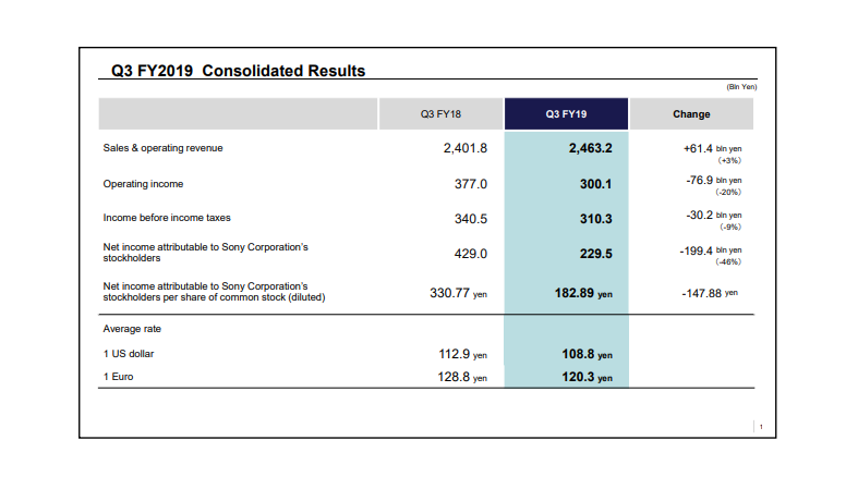 索尼19~20财年Q3财报公开 游戏销售额收入同比下滑