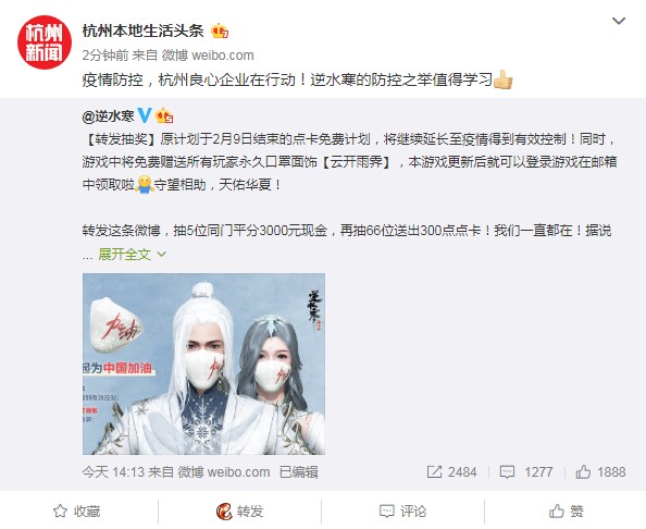为了响应钟南山院士少出门的号召,《逆水寒》官方宣布将从1月29日12点到2月9日24点为止,开启全天免费的利好活动,让所有新老玩家都可以免费畅玩游戏。 为了薅官方的羊毛,不少人“火力全开”,每天24小时不下线,甚至还有神级玩家一星期光搬砖就赚了6891元。 按理说由于疫情的爆发,大众缺乏户外娱乐活动,像《逆水寒》这样的点卡游戏理应引来一波利好,正是官方可以大赚一笔的时候。不过《逆水寒》的开发组却反其道而行之,在2月5日的公告中又宣布:“原计划于2月9日结束的点卡免费计划,将继续延长至疫情得到有效控制。” 为了更好的提醒玩家“出门戴口罩”,开发组还在免点卡的基础上开启了送送送模式,免费赠送所有玩家永久口罩面试。 甚至还有玩家更风还原了一大批抗疫防疫土味标语,将“全家一起戴口罩,胜过吃上一堆药”、“今天一口野味,明天地府相会”等土味标语用《逆水寒》的游戏元素还原了出来,在游戏中硬核防疫! 有官方以身作则,《逆水寒》的玩家们也丝毫不落下风,有的玩家奋战在一线,承担着抗击疫情的第一道防线: 有的玩家以帮会为阵地自发集体募捐,为武汉捐助了一批又一批的防护物资: 从官方到玩家,《逆水寒》中的所有人都在以自己的方式为中国加油,为武汉加油,也难怪各地媒体都纷纷对这次点卡限免时长增加的更新竖起了大拇指! 有的人奋斗在抗击疫情的第一线,而在看不见的战线上,也有人们为看疫情防护在默默付诸自己力所能及之事,舍“益”取“义”,《逆水寒》这种为防控工作献力的的善举,让这款武侠游戏,散发出“侠义”精神现代传承的光辉。 |