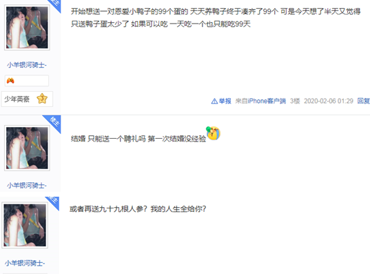 在送礼物这件事上,直男玩家总是拥有一股神秘的力量。 这不,《逆水寒》的一位直男,就突发奇想,决定送给对方一窝小猪,并且全部改成了对方的名字…… 整个故事是这样子的... 在《逆水寒》游戏里,一对男女玩家如果彼此情投意合,就可以互赠定情信物,正式订婚。 然而这位即将步入婚姻殿堂的幸运儿,在送什么上被难住了。 一开始,他想送情缘99颗人参,并且告诉对方“我的人生全交给你啦!” 不过,这种行为似乎也有“烂梗”之嫌。无奈之下,他只能求助于广大玩家,想要获得一个靠谱答案。 这个问题一经提出,就得到许多《逆水寒》玩家们积极响应,大家大开脑洞,给了许多“靠谱”的建议。 有玩家说,“贵的就是对的”,送上一些珍贵外观,一定没问题。不过这些外观都有些小贵,荷包里并不充裕的楼主并没有采纳。 有玩家觉得,婚礼的礼物最重要的是有美好的寓意,送出一个最朴实无华的“遇见”戒指,表达出自己的心意即可。 当然随着更多直男玩家的加入 ,各种不走寻常路的礼物也多了起来。果然在直男的世界里,只有他们想不到的,没有他们不敢送的。 渐渐的,也有些女性玩家加入了建议兼吐槽的队伍中来,为这位楼主解惑、排坑。 在吸纳了玩家们的各种建议后,楼主最终决定,自己要在婚礼上送给情缘一窝小猪,并且每只小猪都要起上跟情缘相同的名字。 一方面,猪肉价格这么高,一窝小猪也算是一笔丰厚的财产了。 另一方面,他还能指着白白胖胖的小猪对情缘说,自己一定能照顾好对方,将她也养得白白胖胖的! 看起来,这位为聘礼想破了头的男玩家,已经做出了自己的决定。 但是,倘若他在婚礼上真的送出了一窝小猪,会不会立即被解除婚约当场离婚呢?期望这位玩家能够获得好运吧! |