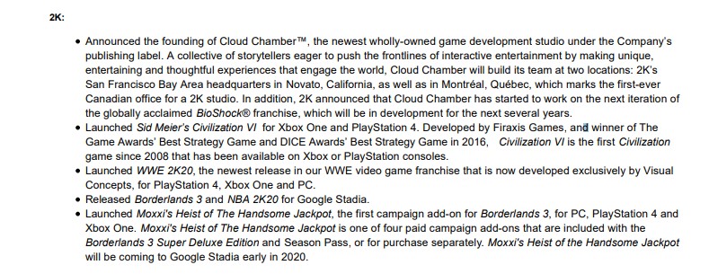 Take-2新财年Q3财报公开 《生化奇兵》新作还需数年