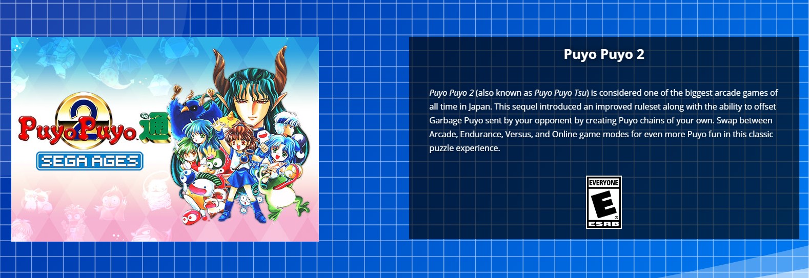 今天(2月7日)SEGA 官方 Twitter 宣布,两款经典游戏《刺猬索尼克 2》与《噗呦噗呦 2》将作为 Sega Ages 的系列作品之一,于2月20日登陆 Switch 平台。想要回味这两款游戏作品的玩家可以届时在 eShop 购买游玩。 《噗呦噗呦 2》被认为是日本有史以来最大的街机游戏之一,玩家需要自游戏中建立并消除噗呦链接,抵消对手发送的垃圾噗呦并将其战胜。玩家可以在街机模式、在线模式等中进行挑选择。 《刺猬索尼克 2》被誉为是 Mega Drive 上最成功的游戏作品,在1996年发售后获得了玩家们的一致好评,与索尼克和塔尔斯一起挫败蛋头博士的阴谋。 Sega Ages现有游戏阵容: |