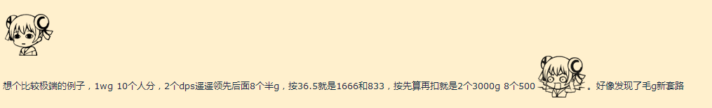 G团已经在国服怀旧服流行了很长一段时间了,恐怕很多玩家都想不到,现在竟然还会因为分G的算法不同而引出争议。 有玩家在论坛上发布了自己的一次神奇经历,当时一共有37个人可以分G,但是其中有一个人只能分一半,团长直言自己不会算了,让团员们算,结果团员之间出现了两种算法:第一种是把总数除以37再除以2,给只能分一半的那个人,剩下的金额再除以36就是其他人的数;第二种则是直接除以36.5得出全额分金的数量,剩下的则是分半份的数量。这个团队最终采取了第一种方法,但这两种算法却引起了网友们热议。 有很多网友用特殊值来验算,结果无一例外,按照第一种算法,也就是该团最终采用的算法,计算下来以后,正常分金的人会分到比第二种算法更多的金,而只能分一半的金的人,最终到手的金比第二种算法更少了。为此网友还惊讶地表示好像发现了毛金的新套路。 其实这两种算法在日常生活中并不罕见,第一种算法就是“扣半金”,第二种算法是“分半金”,两种方法的区别是只能分一半的那个团员,他的另一半金是怎么处置的。第一种算法是直接被扣给另外36人分,第二种算法是他自己也能分到自己被扣的这一半金。两种计算结果的差异也是因此而来的,所以说这个团队只是让被扣半金的人,分不到自己被扣掉的部分,应该算不上是毛金吧。 网友们会对于这个问题而展开热议,归根结底还是在于这两种算法各自都有讲得通的逻辑。看来在成人的世界里,一切数学题归根结底都是语文题。小伙伴们遇到过类似的情况吗?欢迎在下方留言。 |