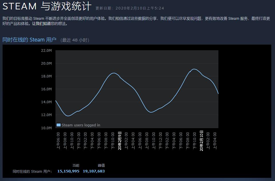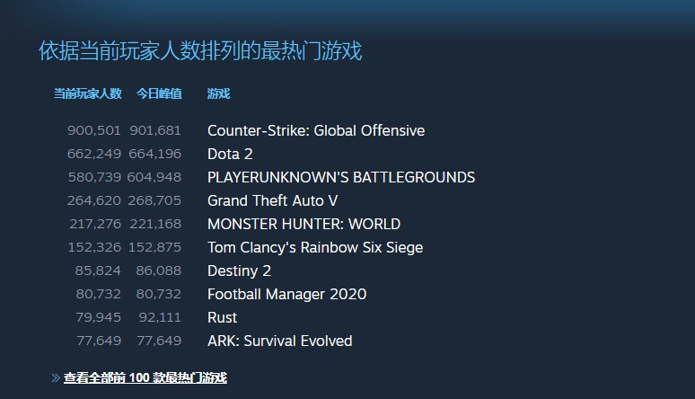 在上周Steam的同时在线用户数超过了1880万,现在这一数据再次被刷新。 根据Steam统计信息,昨晚Steam同时在线用户数量突破了1900万的峰值。而该平台的热门游戏《反恐精英:全球攻势》的玩家峰值数量也突破90万人,达到901681,创造新的记录。 |