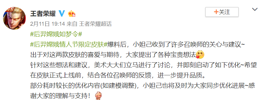 今年的情人节,小情侣们无法实现线下见面约会,以往是聊天、逛街、吃饭、秀恩爱的一套流程走,而今年的情人节都是异地恋!新冠疫情下的爱情,有网友形容说这是“霍乱时期的爱情”,emmm妹子们表示,2月14约出去过情人节的果断拉黑,非常时期欺骗感情可以,但要我命可不行,哈哈哈。 而单身狗们,则是笑得逐渐猖狂,既然大家都见不到,也就没有甜甜的爱情暴击了,听说他们都在线蹲一个可以网恋的女朋友??? 不过有网友表示只要是和喜欢的人在一起,天天都是情人节。如果对象就在身边,虽然没办法出去聚餐,但也可以在家筹备一顿温馨的晚餐,生活重要的是要有仪式感。 没办法相见的情侣也不好慌,不如在王者峡谷中过情人节。可能是想在峡谷过情人节的人数过多,最近这几天《王者荣耀》的服务器总是不太稳定,经常出现登录不上、服务器崩溃的情况。由于疫情无法相见,想一起玩游戏还遇到服务器爆炸,这一届的情侣实在太难了。 在这个特别的节日里,《王者荣耀》官方也带头撒起了狗粮,推出了一套爱意满满的情人节皮肤。这套皮肤名为“如梦令”,讲述了嫦娥与后羿在梦中邂逅,于月下相逢,命定之人终成眷属的浪漫爱情故事。 在官方的情人节宣传视频中,故事说道“喜鹊在云上架桥,命定之人,会从桥得那头,奔向你”,嫦娥后羿CP实在是太甜蜜了,有不少网友表示想买套如梦令,与自己的对象甜蜜双排,将狗粮撒遍王者峡谷。 看到官方海报,会让人不由发出“哇哦”的惊叹声,嫦娥简直就是仙女本人。但不少网友在入手嫦娥后都觉得“货不对板”,裙子与海报完全不同,甚至还建议官方开除建模师。 也有细心的网友发现嫦娥的双脚好像是悬浮在半空当中,既惊悚又诡异,或许建模师太忙了,没时间做腿 。除了诡异的双腿,还有网友指出嫦娥的裙子没像设计稿改成“透明轻柔纱质”,布料散发着一股廉价感,感觉嫦娥做得太糊弄人了。 还有网友在评论下方调侃到是海报的问题,只要调整海报,将海报调成和实物一致即可,这样就能轻松实现建模、海报的统一。 撇开建模不谈,作为情侣皮肤,后羿与嫦娥在技能特效方面有较高的一致性,很适合小情侣双排撒狗粮。也有网友对此表示在情人节期间,要将2个ban位留给后羿和嫦娥,这或许是单身狗最后的倔强。 由于皮肤的负面信息比较多,王者荣耀官方微博发博表示欢迎大家提出各种宝贵想法。评论下方秒变“批斗大会”,网友们纷纷对皮肤提出自己的意见。 有网友提到嫦娥这个皮肤不是心目中的小仙女,吐槽道“这个大直桶薄纱裙什么鬼呀”。有的东西就是这样,乍一看还行,但经不起仔细瞧,不过骂虽然是骂了,但买还是要买的,这位网友说得太真实了。 大多数网友对这套皮肤的看法都是“用心做原画,用脚做建模”,嫦娥不仙,还将帅气小伙后羿做成了中年大叔的模样。不少玩家更是亲自上场,教策划如何修改皮肤特效。 例如作为小仙女,技能打击特效可以更加轻盈一点,应该将嫦娥一技能“旋转的喜鹊”,改成动态飞行的喜鹊。二技能可增加云雾特效,来体现嫦娥的仙气……虽然原特效做得“也还行”,但我也希望皮肤特效能够更炫酷、更细致一点,这也是所有喜欢嫦娥的玩家对这款皮肤的期待。 大家喜欢王者荣耀今年的情人节限定皮肤吗?欢迎在评论下方提出自己的看法。 |