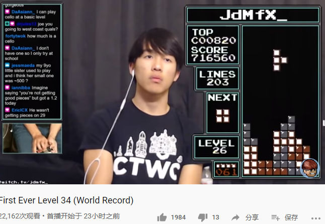 高玩的素养!大师创造红白机版俄罗斯方块LV34人类新记录