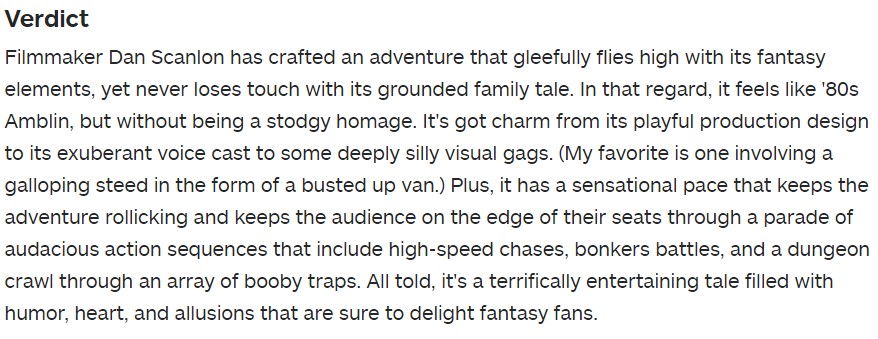 今天(2月22日)IGN 为迪士尼的全新动画《1/2的魔法》打出了7分的评价,本作的烂番茄新鲜度目前为止为81%,喜欢迪士尼动画的影迷可以前往观看。 《1/2的魔法》IGN评测视频: 7分 优秀:《1/2的魔法》非常令人着迷,是一部甜美、暖心冰倩充满乐趣的奇幻冒险旅程,电影的配音阵容也非常坚实。 IGN总评: 电影制作人 Dan Scanlon 精心打造了一部充满奇幻元素的冒险片,情节欢快,但又不失家庭故事的基调。 这部电影的魅力来自它有趣的制作设计、热情洋溢的配音演员阵容和一些非常有意思的视觉笑料。总的来说,《1/2的魔法》拥有一个非常有趣的故事,充满了幽默、爱心以及典故,一定会让各位幻想电影粉丝感到愉悦。 在烂番茄网站中《1/2的魔法》新鲜度为81%,足以见得本作非常扎实的电影剧情及画面表现力,喜欢本作的玩家可以前往影院观看本片。 |