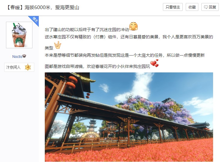 受到疫情的影响,全国各地的居民都积极响应号召呆在家里,有人宅在家里云旅游,有人宅在家里云健身,总之就是充分发掘家里的一亩三分地,誓死也不出去给国家添堵。 然而近日,有一位逆水寒庄园鬼才玩家,活生生的把自己家建造成了一处户外登山景点。他耗时两周,在自己逆水寒的庄园内建造出了海拔6000米的高山,一时间让各路围观的玩家叹为观止。 这位大神的作品发出之后,许多玩家都慕名寻找到了这座庄园。有玩家的实测,从山脚到山顶足足飞跳了两个小时。而且上山的路也是错综复杂,花海缭绕,颇有一种不识庐山真面目,只缘身在此山中的感觉。 该玩家自述:因为喜欢大海喜欢山,所以想要把自己的家园建设在山顶之上。刚好趁着这次逆水寒疫情期间免点卡的福利,才有了这座美轮美奂的山峰的诞生! 而且这名玩家认为太多人工堆砌的痕迹不好看,所以对于自己的细节打磨是精益求精,力求做到完美自然,如果不是事先交代,很多人都会误认为这是逆水寒新出的风景地图。 无独有偶,这边有人在晒家园,那边就有人手把手开课教搭建。一位本职工作是园艺设计师的逆水寒玩家,就分享了上百套自己用软件设计的平面图和参考案例,从零开始教大家如何选地形如何挑景观。 随着逆水寒的不断更新完善,玩法也日渐丰富,如果看淡了江湖的恩恩怨怨,沉迷一下庄园也是一个不错的选择。为了方便玩家建设庄园,逆水寒两度优化庄园资材消耗,增加了每日任务的资材产量,降低了每日的维护费用。 同时为了满足玩家天马行空的想象力,官方还开发出了庄园自主编辑功能,这在业界都是领先的。有家园功能的游戏不少,但是大部分游戏建设家园都是固有的组件,逆水寒率先推出庄园编辑功能,可以让玩家自由改变地形,这样就极大开放了庄园建设的不确定性。 诸如苏州园林,空中花园等世界知名建筑,也在天才玩家们的创举下在庄园内重现。 从一开始自己挖池塘都现在的自己捏山,逆水寒正在一步步完善休闲玩法,让各种类型的玩家都能找到适合自己的玩法,逆水寒不仅有江湖情仇,也有山有水有远方。 |