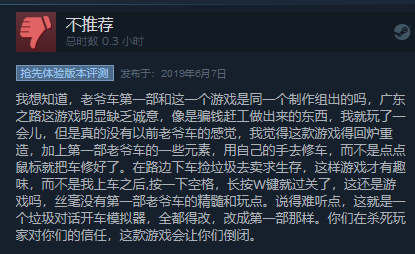 PC版多半差评!玩家吐槽《广东之路》 缺乏诚意